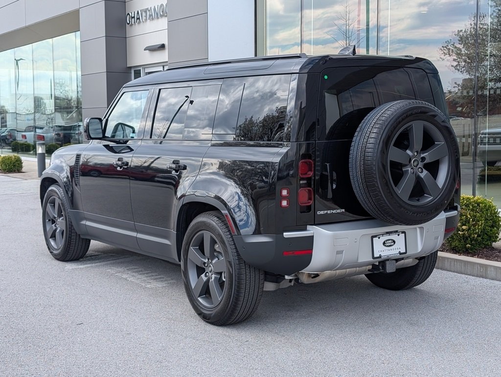 Recent Arrival! Certified. Clean CARFAX. Land Rover Chattanooga is pumped up to offer this stunning 2025 Land Rover Defender 110 in Santorini Black. This vehicle has passed our comprehensive inspection and comes with the following features; Land Rover Certified Pre-Owned, Retired Courtesy Vehicle, Never Been Titled!, This Land Rover's original factory warranty started on 07/31/2025, 14-Way Heated and Cooled Electric Memory Front Seats, 40:20:40 Folding Heated Rear Seats with Center Armrest, Adaptive Dynamics, Air Suspension Pack, Apple CarPlay & Android Auto, Cold Climate Package, Electronic Air Suspension, Extended Leather Upgrade, Head-Up Display, Headlight Power Wash, Heated Washer Jets, Heated Windscreen, Leather Gearshift, Leather Wrapped Steering Wheel with PU Driver Airbag, Locking Wheel Nuts, Premium Interior Protection and Storage Package (5 Seat), Premium Upgrade Interior Pack, Radio: Meridian Sound System, Rear Seat Convenience Pack, Tow Hitch Receiver, Wheels: 20" Satin Dark Grey Style 5098. 8-Speed Automatic 2.0L I4 DI Turbocharged Santorini Black. Odometer is 6968 miles below market average!