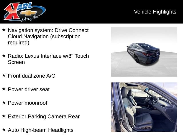 This 2025 Lexus ES 300h ES 300H F Sport Design is a true standout in the luxury sedan segment. With its sleek, sophisticated design and advanced hybrid powertrain, this vehicle offers an unparalleled driving experience that blends performance, efficiency, and style. Under the hood, the 2.5L I4 DOHC 16V VVT engine and eCVT transmission deliver an impressive 43 city/44 highway MPGe, making this Lexus an exceptional choice for the eco-conscious driver. The vehicle's advanced hybrid technology not only provides exceptional fuel economy but also delivers a smooth, responsive, and remarkably quiet ride. Step inside, and you'll be greeted by a wealth of premium features that elevate the driving experience. The 12.3 display with Drive Connect, Intelligent assistant, and Destination Assist ensures you'll always stay connected and on top of your navigation needs. The stunning wood trim with ambient lighting and illuminated door sills add a touch of elegance. The all-weather floor liners and trunk tray provide practical protection for your vehicle. This Lexus ES 300h is more than just a luxury sedan it's a testament to Lexus' commitment to innovation, craftsmanship, and customer satisfaction. With its exceptional performance, advanced technology, and premium amenities, this vehicle is sure to impress even the most discerning driver.