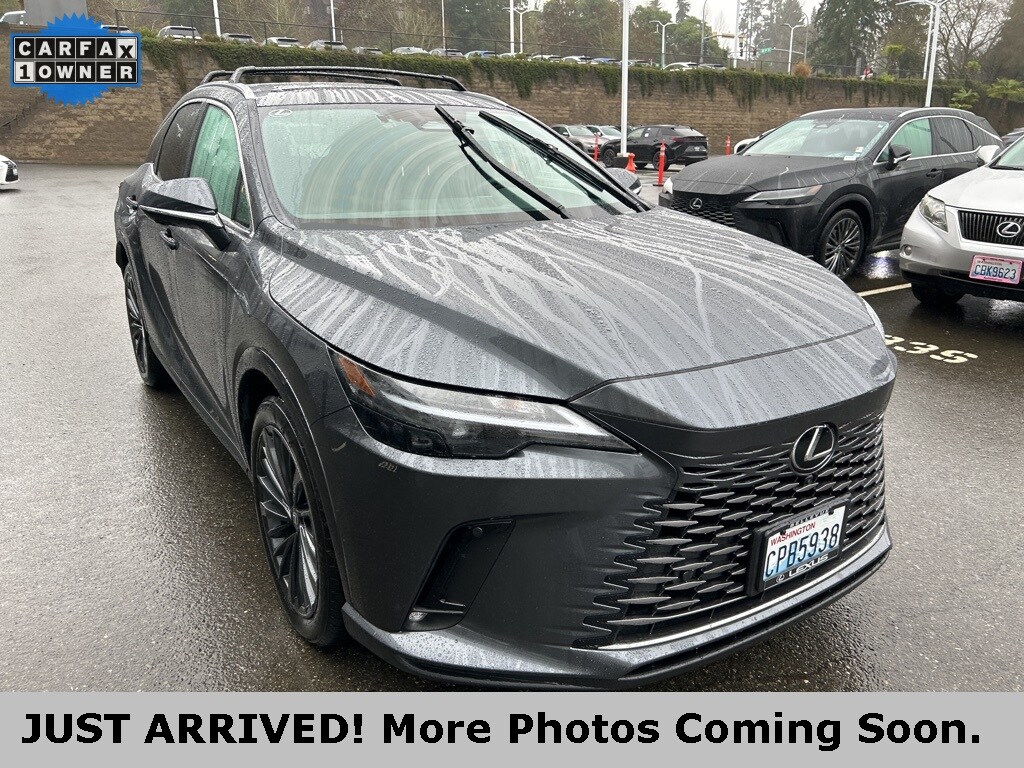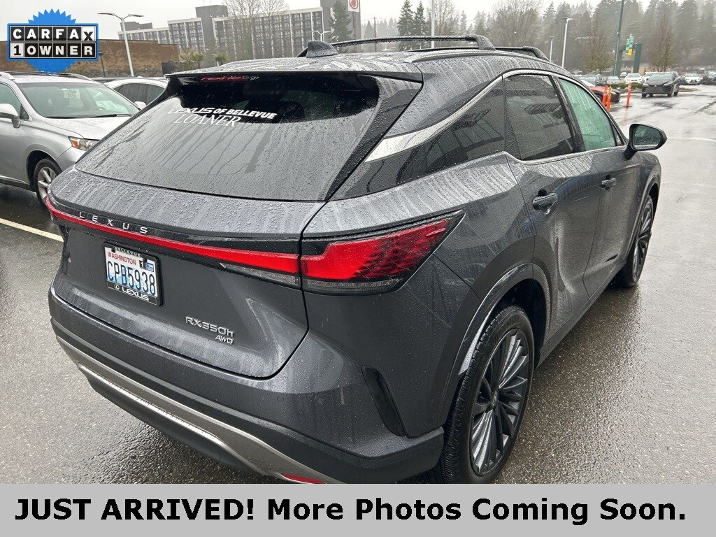 CARFAX One-Owner. 2 YEARS OR 20K MILES MAINTENANCE INCLUDED!, One owner on Carfax!, Local trade, Lexus factory certified, AWD, back up camera, Bluetooth, heated and ventilated seats, navigation, parking sensors, premium package, Wireless Apple CarPlay Integration Wireless Android Auto Capability, Blind Spot Monitor with Rear Cross Traffic Alert, Panoramic View Monitor, Lexus Safety System+ 3.0, 2.5L I4 DOHC 16V, AWD, Black with Black Open Pore Artificial Leather, 12 Speakers, Active Cruise Control, Air Conditioning, Alloy wheels, Convenience Package, Exterior Parking Camera Rear, Heated & Ventilated Front Bucket Seats, Heated door mirrors, Heated steering wheel, Leather Shift Knob, Leather steering wheel, Memory seat, Navigation System, Power Liftgate, Power moonroof, Premium Package, Radio: Lexus Interface with 14" Touchscreen Display, Rain sensing wipers, Speed control, Wheels: 21 20-Spoke Alloy. 2025 Lexus RX 350h Premium Cloudburst Gray AWD 2.5L I4 DOHC 16V CVT Certified. L/Certified Details: Certified Warranty: Comprehensive Inspection, Unlimited-mileage warranty up to 6 years. Balance of new car warranty (4 Year/50K Miles) plus 2 Year/Unlimited-mileage L/Certified warranty. Service Maintenance: Complimentary Maintenance Plan covering the first four basic factory-scheduled maintenance services for 2 years or 20,000 miles. Warranty Deductible: $0. Limited Warranty: 24 Month/Unlimited Mile. Roadside Assistance. Vehicle History. Odometer is 4482 miles below market average! 37/34 City/Highway MPG. Come to www.lexusofbellevue.com To See Our Specials! Call us at 425-455-9995 for Help with any of our departments. Enjoy a seamless, transparent luxury buying experience at Lexus of Bellevue and Lexus Plus.