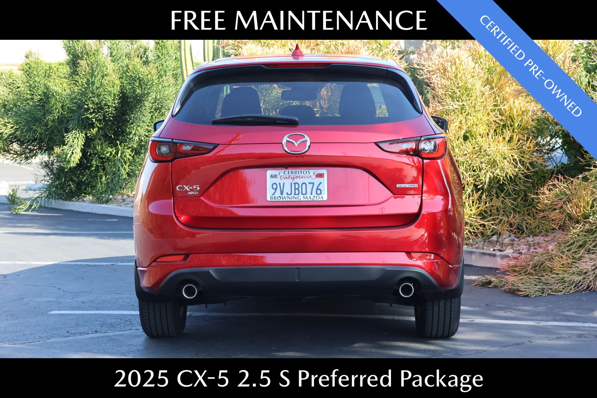 CARFAX One-Owner. Clean CARFAX. Certified. Soul Red Crystal Metallic 2025 Mazda CX-5 2.5 S Preferred Package AWD 6-Speed Automatic SKYACTIV® 2.5L 4-Cylinder DOHC 16V. CARFAX One-Owner. Clean CARFAX. Certified. Mazda Certified Pre-Owned Details