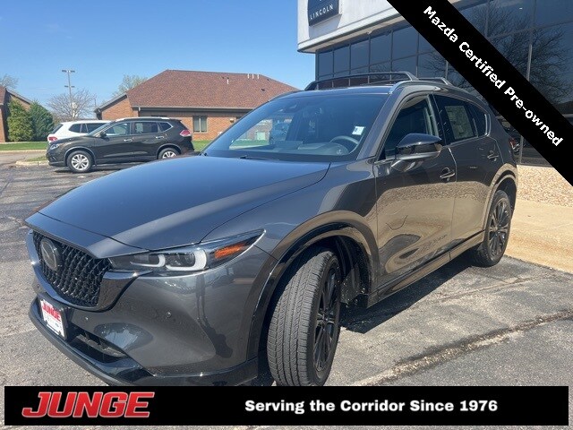 Junge is committed to providing a best-in-class experience to our customers and employees! Respectful - fair - loyal. 2025 Mazda CX-5 2.5 Turbo Premium Machine Gray Metallic. 2.5 Turbo Premium AWD 6-Speed Automatic Mazda Certified Pre-Owned Certified. Clean CARFAX. Odometer is 1456 miles below market average! 22/27 City/Highway MPG. Mazda Certified Pre-Owned Details: Powertrain Limited Warranty: 84 Month/100,000 Mile (whichever comes first) from original in-service date. Transferable Warranty. Limited Warranty: 12 Months after new after new car.
