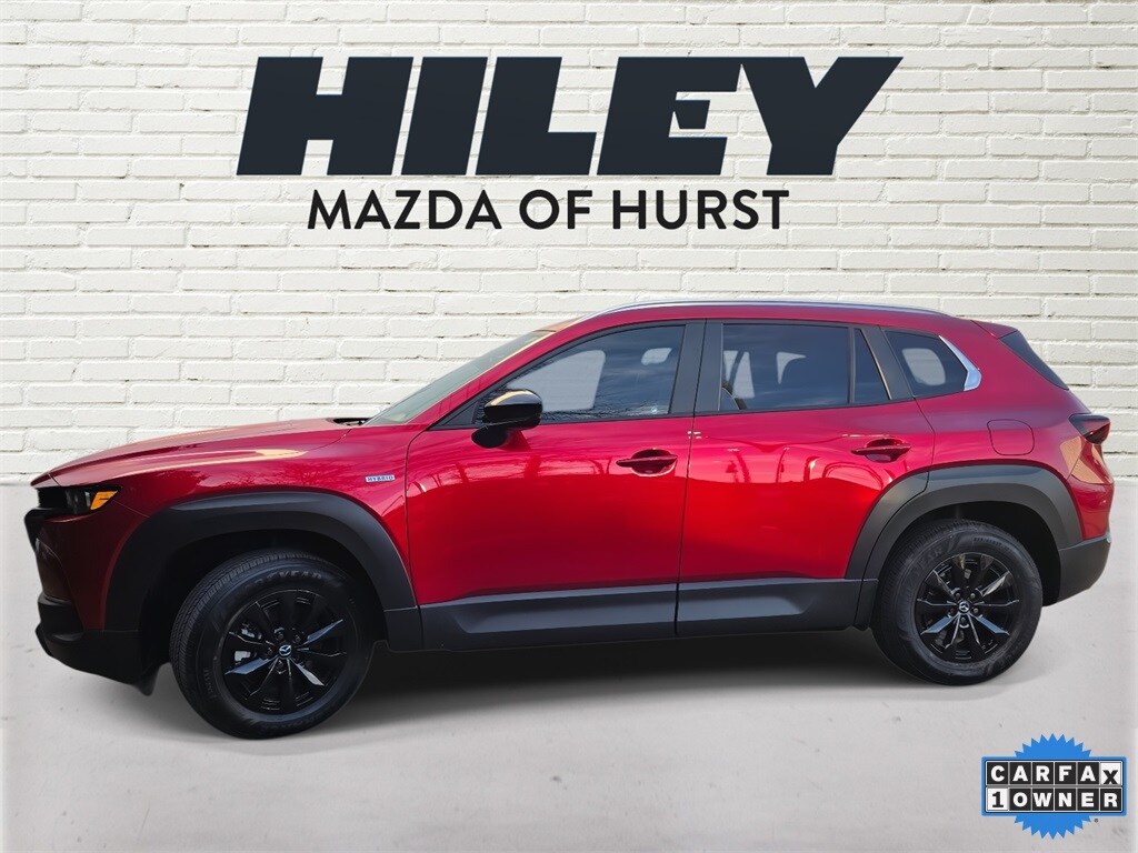 Priced below KBB Fair Purchase Price! Clean Carfax. One owner, Skyactiv, 4WD, heated seats, power seat, navigation, non-smoker, 2.5L 4-Cylinder, air conditioning, AppLink/Apple CarPlay and Android Auto, automatic temperature control, cargo blocks, cargo net, cargo package, delay-off headlights, electronic stability control, emergency communication system: Mazda Connect, exterior parking camera rear, front bucket seats, front center armrest, half leatherette seat trim, heated front bucket seats, heated front seats, leather shift knob, leather steering wheel, power liftgate, radio: AM/FM/HD 8-Speaker Audio Sound System, Soul Red Crystal Metallic Paint Charge, steering wheel mounted audio controls. Certified. Mazda Certified Pre-Owned Details: 160 Point Inspection, Roadside Assistance, Powertrain Limited Warranty: 84 Month/100,000 Mile (whichever comes first) from original in-service date, Vehicle History, Includes Autocheck Vehicle History Report with 3 Year Buyback Protection. 3 month SiriusXM trial subscription. Transferable Warranty. Warranty Deductible: $0. Limited Warranty: 12 Month/12,000 Mile (whichever comes first) after new car warranty expires or from certified purchase date. Soul Red Crystal Metallic 2025 Mazda CX-50 Hybrid Preferred AWD eCVT 2.5L 4-Cylinder. Hiley Mazda of Hurst 817-701-1000. Trade ins are welcome and we finance! Please call to confirm availability, as used vehicles are first come, first sold. All used vehicles are subject to 2% Sales and Service fee. Thank you for shopping with us!