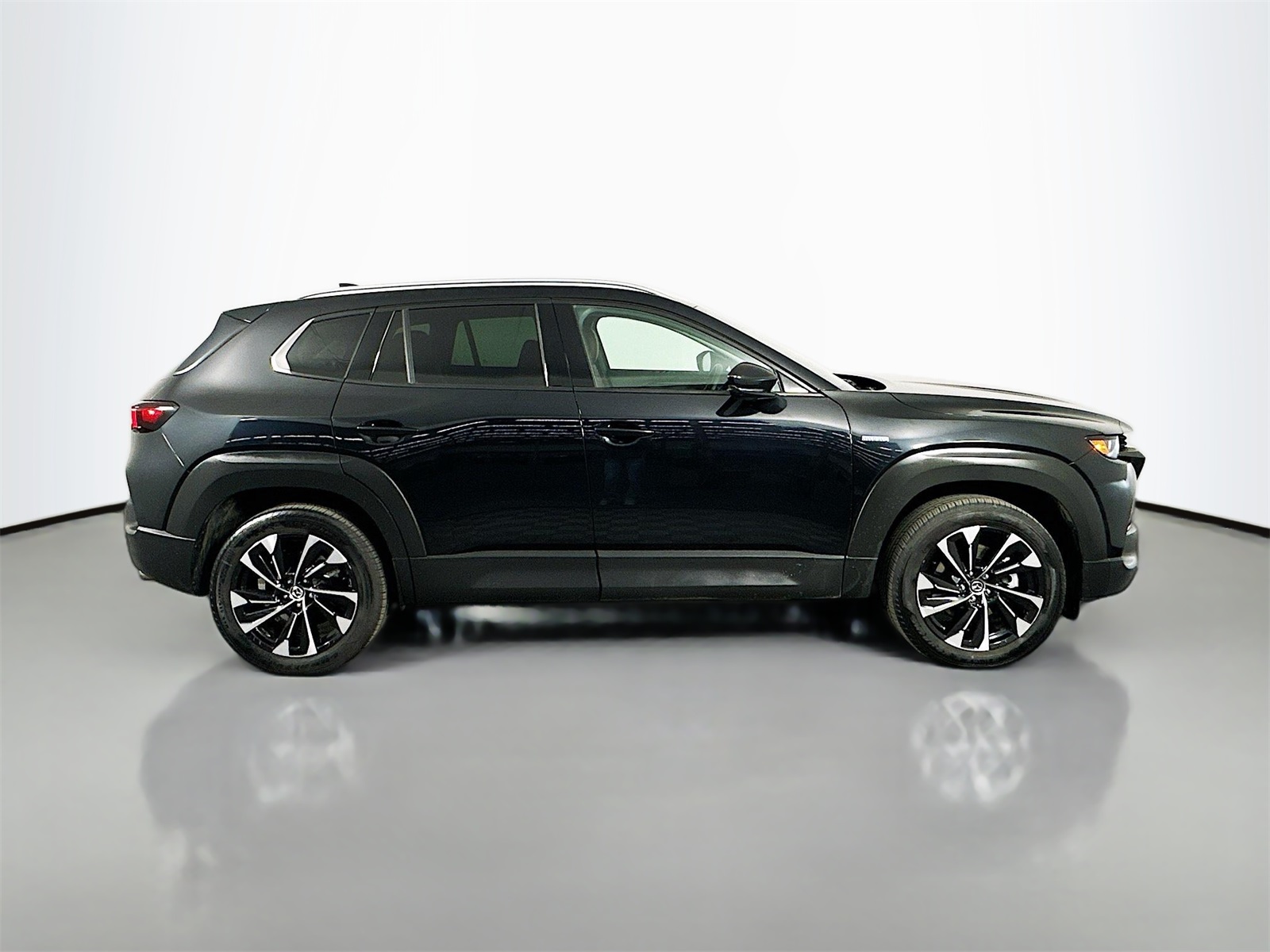 Mazda Factory Certified with complimentary 7 year 100k mile warranty! CARFAX One-Owner. Jet Black Mica 2025 Mazda CX-50 Hybrid Premium Plus 4D Sport Utility 2.5L 4-Cylinder eCVT AWD 2.5L 4-Cylinder, 12 Speakers, 4-Wheel Disc Brakes, ABS brakes, Air Conditioning, AM/FM radio: SiriusXM, Android Auto, Apple CarPlay, AppLink/Apple CarPlay and Android Auto, Auto High-beam Headlights, Auto-dimming Rear-View mirror, Automatic temperature control, Backup Camera, Blind Spot, BlueTooth, Brake assist, Bumpers: body-color, Delay-off headlights, Driver door bin, Driver vanity mirror, Dual front impact airbags, Dual front side impact airbags, Electronic Stability Control, Emergency communication system: Mazda Connect, Front anti-roll bar, Front Bucket Seats, Front Center Armrest, Front dual zone A/C, Front reading lights, Front wheel independent suspension, Fully automatic headlights, Garage door transmitter: HomeLink, Heads-Up Display, Heated and Ventilated Front Seats with 3 Level Adjustment, Heated door mirrors, Heated front seats, Heated Seats, Illuminated entry, Keyless Entry, Knee airbag, Leather, Leather Seat Trim, Leather Shift Knob, Leather steering wheel, Low tire pressure warning, Memory seat, Occupant sensing airbag, Outside temperature display, Overhead airbag, Overhead console, Panic alarm, Passenger door bin, Passenger vanity mirror, Power door mirrors, Power driver seat, Power Liftgate, Power moonroof, Power passenger seat, Power steering, Power windows, Radio data system, Radio: AM/FM/HD Bose 12-Speaker Audio Sound System, Rear seat center armrest, Rear window defroster, Remote keyless entry, Speed control, Speed-sensing steering, Split folding rear seat, Spoiler, Steering wheel mounted audio controls, Tachometer, Telescoping steering wheel, Tilt steering wheel, Traction control, Trip computer, Turn signal indicator mirrors, Ventilated front seats. Odometer is 1403 miles below market average!
