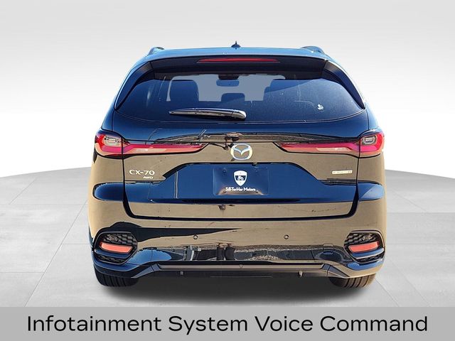Certified. Jet Black Mica 2025 Mazda CX-70 3.3 Turbo S Premium AWD 8-Speed Automatic I6 Turbo. This 2025 Mazda is rare!, Heated front seats, Heated rear seats, Infotainment System Voice Command, Moonroof / Apple Car, Navigation - MAZDA CONNECT, Power moon, Radio Broadcast Data System Program Information, Radio: AM/FM w/Bose Premium Audio Sound System, SMS Text Msg Audio Delivery & Reply, Wheels: 21" x 9.5J Aluminum Alloy.