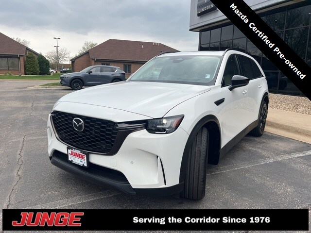 Junge is committed to providing a best-in-class experience to our customers and employees! Respectful - fair - loyal. 2025 Mazda CX-90 3.3 Turbo Premium Rhodium White Premium. 3.3 Turbo Premium AWD 8-Speed Automatic Mazda Certified Pre-Owned Certified, 12 Speakers, 2nd-Row Captain's Chairs, 3rd row seats: bench, 4-Wheel Disc Brakes, ABS brakes, Air Conditioning, Alloy wheels, AM/FM radio: SiriusXM, Auto High-beam Headlights, Auto-dimming Rear-View mirror, Automatic temperature control, Brake assist, Bumpers: body-color, Compass, Delay-off headlights, Driver door bin, Driver vanity mirror, Dual front impact airbags, Dual front side impact airbags, Driver door parking, Driver door bin. Clean CARFAX. Our goal is to be the area's TOP choice for automotive sales & service.