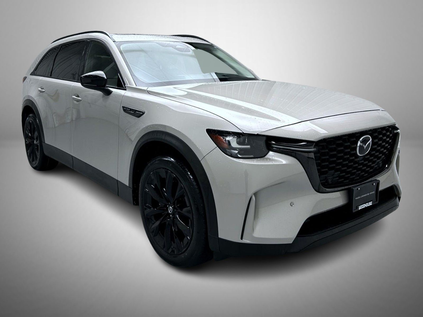 Certified. Platinum Quartz 2025 Mazda CX-90 3.3 Turbo Premium AWD 8-Speed Automatic 3.3L 6 cylinder Mazda Certified, 12 Speakers, 2nd-Row Captain's Chairs, 3rd row seats: bench, 4-Wheel Disc Brakes, ABS brakes, Air Conditioning, Alloy wheels, AM/FM radio: SiriusXM, Auto High-beam Headlights, Auto-dimming Rear-View mirror, Automatic temperature control, Brake assist, Bumpers: body-color, Compass, Delay-off headlights, Driver door bin, Driver vanity mirror, Dual front impact airbags, Dual front side impact airbags, E911 Automatic Emergency Notification, Electronic Stability Control, Emergency communication system: MAZDA CONNECT, Exterior Parking Camera Rear, Four wheel independent suspension, Front anti-roll bar, Front Bucket Seats, Front Center Armrest w/Storage, Front dual zone A/C, Front reading lights, Fully automatic headlights, Garage door transmitter: HomeLink, Heads-Up Display, Heated door mirrors, Heated Front Bucket Seats, Heated front seats, Illuminated entry, Infotainment System Voice Command, Knee airbag, Leather Seat Trim, Leather Shift Knob, Leather steering wheel, Low tire pressure warning, Mazda Connected Services, Mazda Navigation System, Memory seat, Navigation system: MAZDA CONNECT, Occupant sensing airbag, Outside temperature display, Overhead airbag, Overhead console, Pandora Internet Radio Integration, Panic alarm, Passenger door bin, Passenger vanity mirror, Power door mirrors, Power driver seat, Power Liftgate, Power moonroof, Power passenger seat, Power steering, Power windows, Radio Broadcast Data System Program Information, Radio data system, Radio: AM/FM w/HD/Bose 12-Speaker Sound System, Rain sensing wipers, Rear air conditioning, Rear anti-roll bar, Rear reading lights, Rear seat center armrest, Rear window defroster, Rear window wiper, Remote keyless entry, Speed control, Speed-sensing steering, Split folding rear seat, Spoiler, Steering wheel mounted audio controls, Tachometer, Telescoping steering wheel, Tilt steering wheel, Traction control, Trip computer, Turn signal indicator mirrors, Variably intermittent wipers, Wheels: 21" x 9.5J Aluminum Alloy.