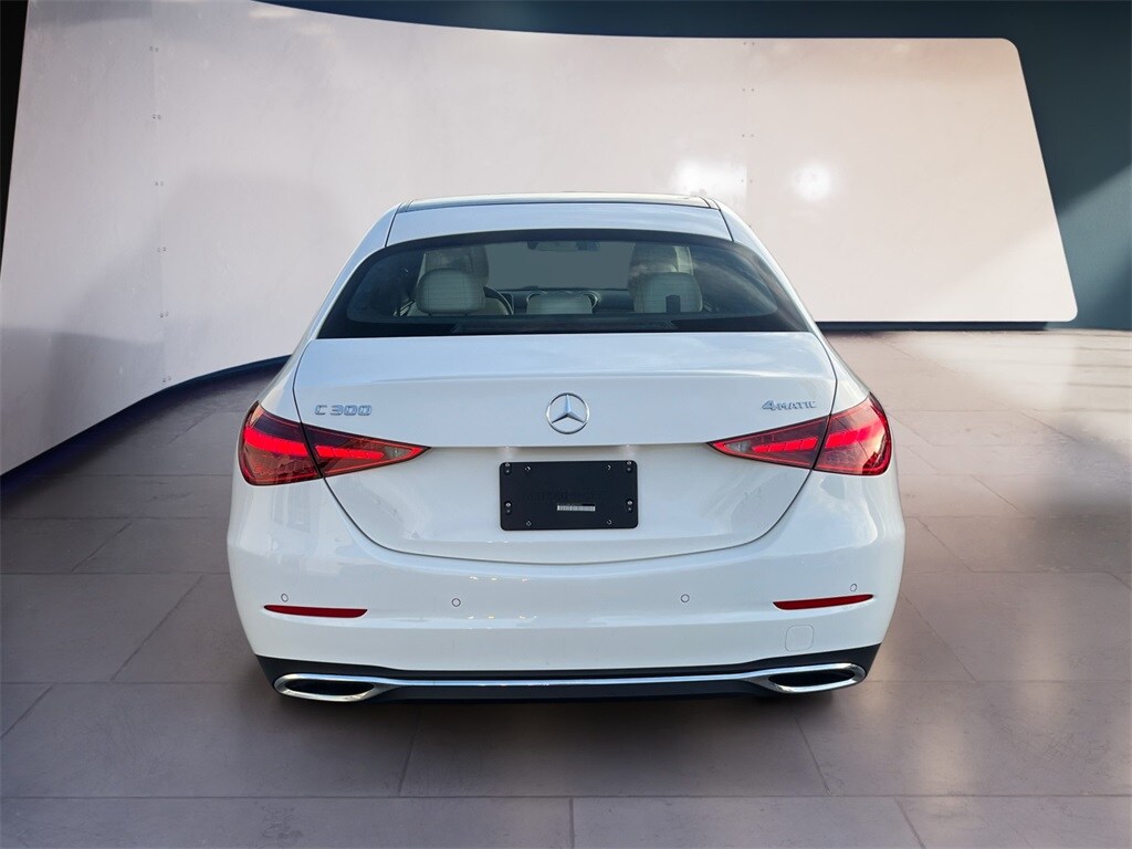 CARFAX One-Owner. Clean CARFAX. Certified. Polar White 2025 Mercedes-Benz C-Class C 300 4MATIC 9-Speed Automatic 2.0L I4 Turbocharged Mercedes-Benz Certified Pre-Owned, Former Executive Loaner, C 300 4MATIC, 4D Sedan, 2.0L I4 Turbocharged, 9-Speed Automatic, 4MATIC, Polar White, Beige Leatherette, 11.9" Center Touchscreen Display, 18" 5-Spoke Wheels, Air Conditioning, Alloy wheels, Apple CarPlay/Android Auto, Exterior Parking Camera Rear, Heated front seats, Heated Steering Wheel, Memory seat, Panorama Roof, Power driver seat, Premium audio system: MBUX, Radio: FrontBass 5-Speaker Audio System, SiriusXM Satellite Radio. Recent Arrival! 24/33 City/Highway MPG Mercedes-Benz Certified Pre-Owned Details: Roadside Assistance, Includes Trip Interruption Reimbursement and 7 days/500 miles Exchange Privilege, Warranty Deductible: $0, Limited Warranty: 12 Month/Unlimited Mile beginning after new car warranty expires or from certified purchase date, Transferable Warranty, Vehicle History, 165+ Point Inspection. We have been a family owned business for our entire 50+ year existence. We pride ourselves on building and maintaining long lasting relationships, delighting our customers, and going the extra mile to ensure you are satisfied and taken care of.