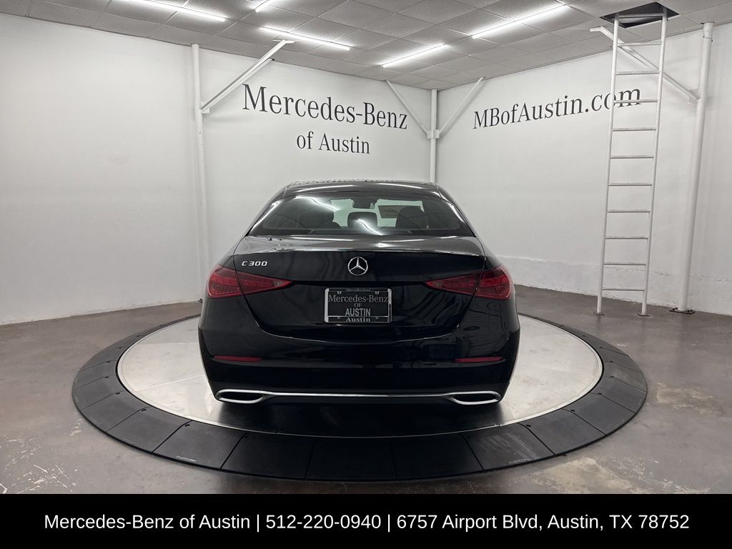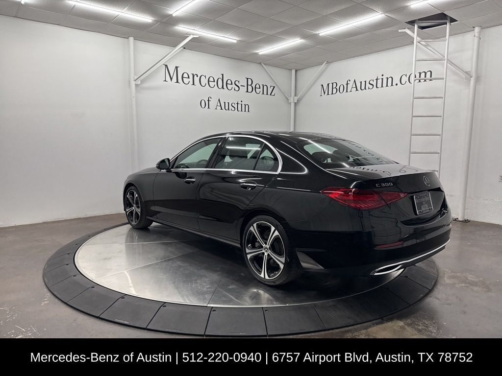Black 2025 Mercedes-Benz C-Class C 300 2.0L I4 Turbocharged RWD. Clean CARFAX. Recent Arrival! This vehicle comes with the following features and options : 11.9" Center Touchscreen Display, 18" 5-Spoke Wheels, 19" 5-Spoke Wheels, 4-Wheel Disc Brakes, 5 Speakers, ABS brakes, Air Conditioning, Alloy wheels, AM/FM radio: SiriusXM, Anti-whiplash front head restraints, Apple CarPlay/Android Auto, Auto High-beam Headlights, Auto tilt-away steering wheel, Auto-dimming door mirrors, Auto-dimming Rear-View mirror, Automatic temperature control, Black Fabric Headliner, Brake assist, Bumpers: body-color, Child-Seat-Sensing Airbag, Compass, Delay-off headlights, Driver door bin, Driver vanity mirror, Dual front impact airbags, Dual front side impact airbags, Electronic Stability Control, Emergency communication system: Mercedes-Benz Emergency Call Service, Exterior Parking Camera Rear, First Aid Kit, Four wheel independent suspension, Front anti-roll bar, Front Bucket Seats, Front Center Armrest, Front dual zone A/C, Front reading lights, Fully automatic headlights, Garage door transmitter: HomeLink, Genuine wood dashboard insert, Head restraints memory, Heated door mirrors, Heated front seats, Illuminated entry, Knee airbag, Leather steering wheel, Low tire pressure warning, Lumbar Support, MB-Tex Upholstery, Memory seat, Occupant sensing airbag, Outside temperature display, Overhead airbag, Overhead console, Panic alarm, Passenger door bin, Passenger vanity mirror, Piano Black Lacquer Center Console, Power adjustable front head restraints, Power door mirrors, Power driver seat, Power moonroof, Power passenger seat, Power steering, Power windows, Premium audio system: MBUX, Radio data system, Radio: FrontBass 5-Speaker Audio System, Rain sensing wipers, Rear anti-roll bar, Rear fog lights, Rear reading lights, Rear seat center armrest, Rear window defroster, Remote keyless entry, Security system, SiriusXM Satellite Radio, Speed control, Speed-sensing steering, Split folding rear seat, Steering wheel memory, Steering wheel mounted audio controls, Tachometer, Telescoping steering wheel, Tilt steering wheel.