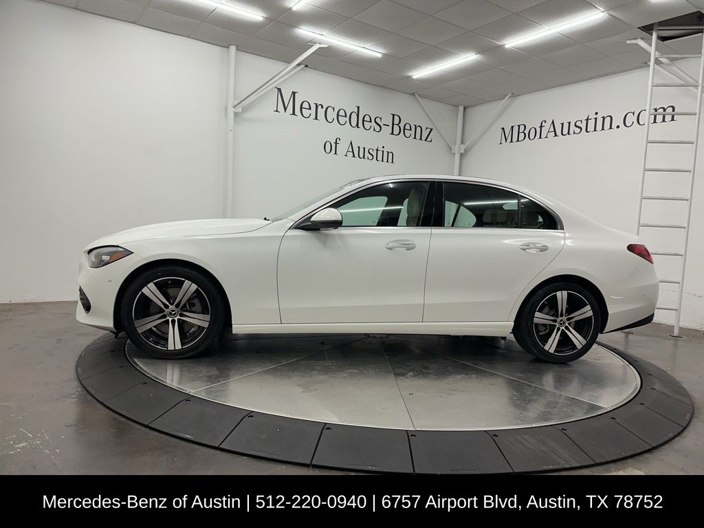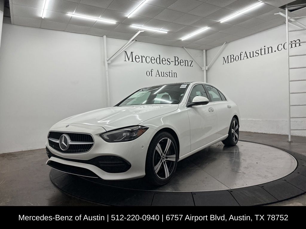 Polar White 2025 Mercedes-Benz C-Class C 300 2.0L I4 Turbocharged RWD. Clean CARFAX. Recent Arrival! This vehicle comes with the following features and options : 11.9" Center Touchscreen Display, 18" 5-Spoke Wheels, 4-Wheel Disc Brakes, 5 Speakers, ABS brakes, Air Conditioning, Alloy wheels, AM/FM radio: SiriusXM, Anti-whiplash front head restraints, Apple CarPlay/Android Auto, Auto High-beam Headlights, Auto tilt-away steering wheel, Auto-dimming door mirrors, Auto-dimming Rear-View mirror, Automatic temperature control, Black Fabric Headliner, Brake assist, Bumpers: body-color, Child-Seat-Sensing Airbag, Compass, Delay-off headlights, Driver door bin, Driver vanity mirror, Dual front impact airbags, Dual front side impact airbags, Electronic Stability Control, Emergency communication system: Mercedes-Benz Emergency Call Service, Exterior Parking Camera Rear, First Aid Kit, Four wheel independent suspension, Front anti-roll bar, Front Bucket Seats, Front Center Armrest, Front dual zone A/C, Front reading lights, Fully automatic headlights, Garage door transmitter: HomeLink, Genuine wood dashboard insert, GUARD 360, Head restraints memory, Heated door mirrors, Heated front seats, Illuminated entry, Knee airbag, Leather steering wheel, Low tire pressure warning, Lumbar Support, MB-Tex Upholstery, Memory seat, Occupant sensing airbag, Outside temperature display, Overhead airbag, Overhead console, Panic alarm, Passenger door bin, Passenger vanity mirror, Power adjustable front head restraints, Power door mirrors, Power driver seat, Power passenger seat, Power steering, Power windows, Premium audio system: MBUX, Radio data system, Radio: FrontBass 5-Speaker Audio System, Rain sensing wipers, Rear anti-roll bar, Rear fog lights, Rear reading lights, Rear seat center armrest, Rear window defroster, Remote keyless entry, Security system, SiriusXM Satellite Radio, Speed control, Speed-sensing steering, Split folding rear seat, Steering wheel memory, Steering wheel mounted audio controls, Tachometer, Telescoping steering wheel, Tilt steering wheel, TIREFIT, Traction control, Trip computer, Turn signal indicator mirrors, Variably intermittent wipers.