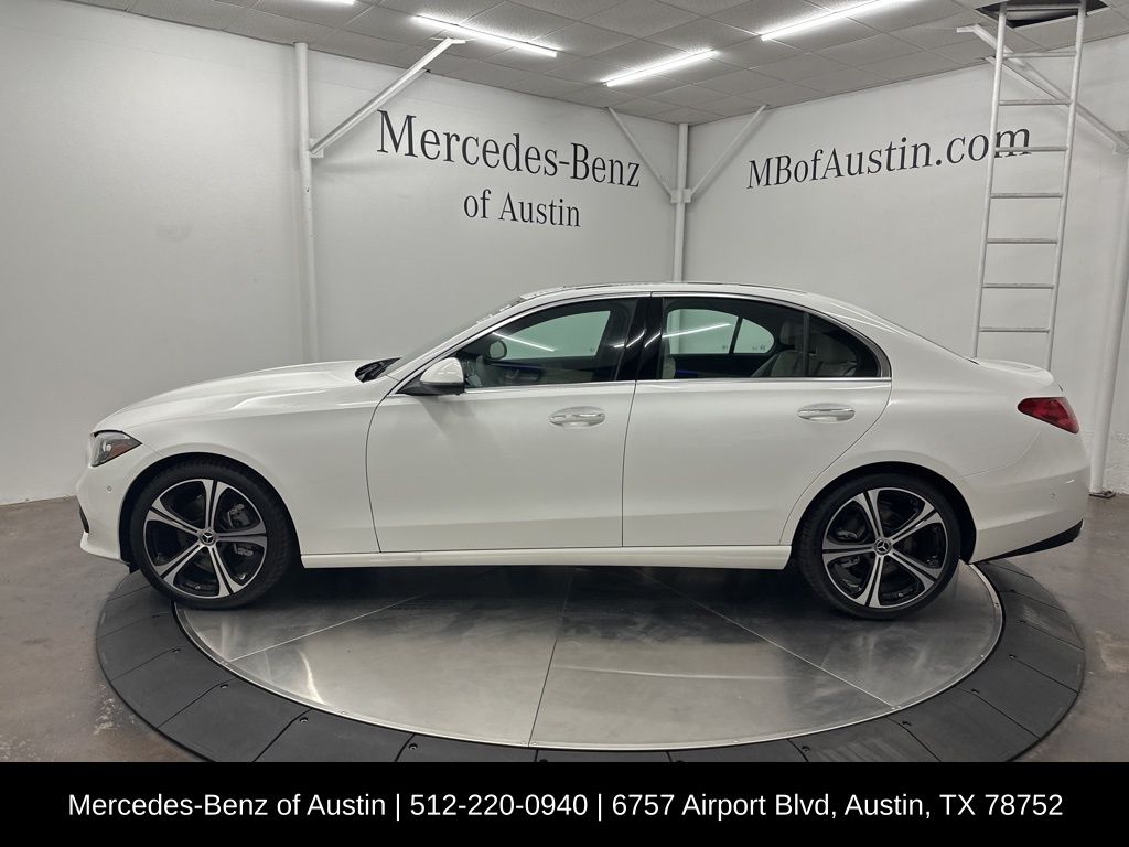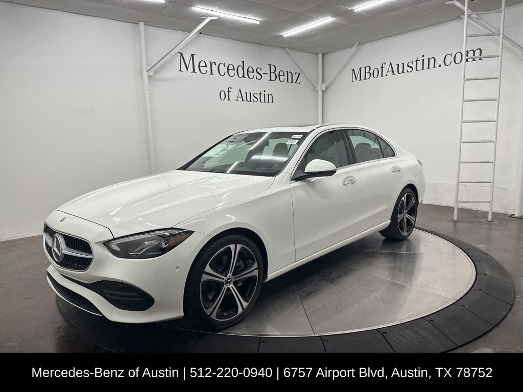 Polar White 2025 Mercedes-Benz C-Class C 300 2.0L I4 Turbocharged RWD. Clean CARFAX. Recent Arrival! This vehicle comes with the following features and options : 11.9" Center Touchscreen Display, 19" 5-Spoke Wheels, 4-Wheel Disc Brakes, 5 Speakers, ABS brakes, Air Conditioning, Alloy wheels, AM/FM radio: SiriusXM, Anti-whiplash front head restraints, Apple CarPlay/Android Auto, Auto High-beam Headlights, Auto tilt-away steering wheel, Auto-dimming door mirrors, Auto-dimming Rear-View mirror, Automatic temperature control, Black Fabric Headliner, Brake assist, Bumpers: body-color, Child-Seat-Sensing Airbag, Compass, Delay-off headlights, Driver door bin, Driver vanity mirror, Dual front impact airbags, Dual front side impact airbags, Electronic Stability Control, Emergency communication system: Mercedes-Benz Emergency Call Service, Exterior Parking Camera Rear, First Aid Kit, Four wheel independent suspension, Front anti-roll bar, Front Bucket Seats, Front Center Armrest, Front dual zone A/C, Front reading lights, Fully automatic headlights, Garage door transmitter: HomeLink, Genuine wood dashboard insert, Head restraints memory, Heated door mirrors, Heated front seats, Illuminated entry, Knee airbag, Leather steering wheel, Low tire pressure warning, Lumbar Support, MB-Tex Upholstery, Memory seat, Occupant sensing airbag, Outside temperature display, Overhead airbag, Overhead console, Panic alarm, Passenger door bin, Passenger vanity mirror, Piano Black Lacquer Center Console, Power adjustable front head restraints, Power door mirrors, Power driver seat, Power passenger seat, Power steering, Power windows, Premium audio system: MBUX, Radio data system, Radio: FrontBass 5-Speaker Audio System, Rain sensing wipers, Rear anti-roll bar, Rear fog lights, Rear reading lights, Rear seat center armrest, Rear window defroster, Remote keyless entry, Security system, SiriusXM Satellite Radio, Speed control, Speed-sensing steering, Split folding rear seat, Steering wheel memory, Steering wheel mounted audio controls, Tachometer, Telescoping steering wheel, Tilt steering wheel.