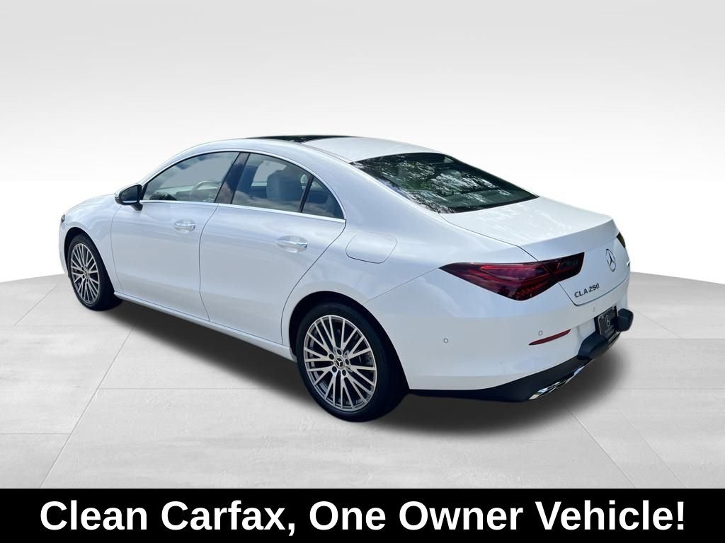 2025 Mercedes-Benz CLA CLA 250 Clean Carfax. Carfax One-Owner. Certified. Mercedes-Benz Certified Pre-Owned Details: Includes Trip Interruption Reimbursement and 7 days/500 miles Exchange Privilege, Warranty Deductible: $0, Limited Warranty: 12 Month/Unlimited Mile beginning after new car warranty expires or from certified purchase date, 165+ Point Inspection, Vehicle History, Roadside Assistance, Transferable Warranty. 25/34 City/Highway MPG. Price does not include applicable tax, title, license charges, and dealer installed options or accessories. Must finance through manufacturer's or dealer's preferred lender for certain incentives. Important recall information: so you know, any pre-owned vehicle you may be considering may have unrepaired manufacturer’s safety recalls. To check the recall status (repaired or unrepaired) of the specific pre-owned vehicle you’re interested in purchasing visit www.safercar.gov.