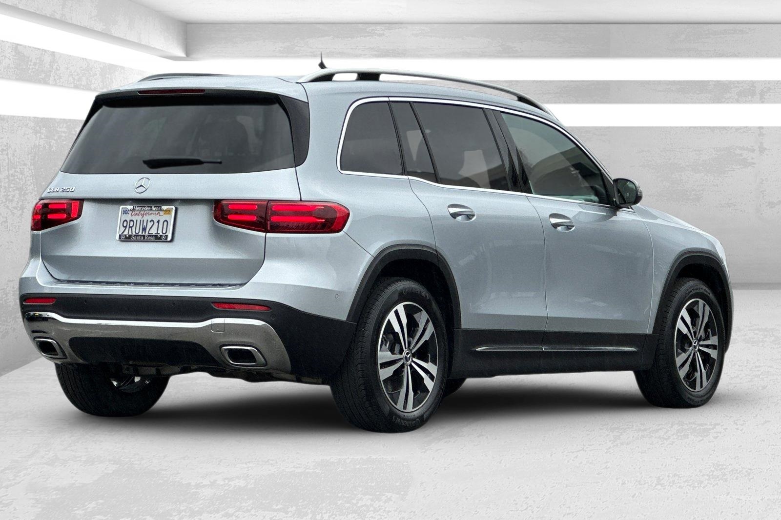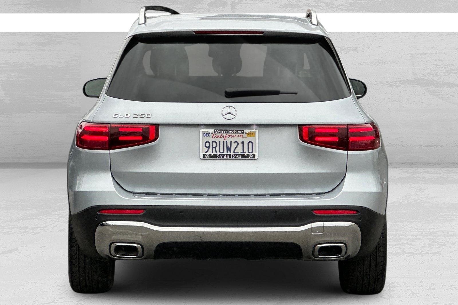 Clean CARFAX. CARFAX One-Owner. Certified. This 2025 Silver Metallic Mercedes-Benz GLB GLB 250 FWD is well equipped and includes these features and benefits: Mercedes-Benz Certified Pre-Owned Certified, 4-Wheel Disc Brakes, 8 Speakers, ABS brakes, Air Conditioning, Alloy wheels, AM/FM radio: SiriusXM, Apple CarPlay/Android Auto, Auto High-beam Headlights, Auto-dimming door mirrors, Automatic temperature control, Brake assist, Bumpers: body-color, Child-Seat-Sensing Airbag, Delay-off headlights, Driver door bin, Driver vanity mirror, Dual front impact airbags, Dual front side impact airbags, Electronic Stability Control, Emergency communication system: Mercedes-Benz Emergency Call Service, Exterior Parking Camera Rear, Four wheel independent suspension, Front anti-roll bar, Front Bucket Seats, Front Center Armrest, Front Comfort Seats, Front dual zone A/C, Front fog lights, Front reading lights, Fully automatic headlights, Garage door transmitter, Heated door mirrors, Heated Front Seats, Heated front seats, Illuminated entry, Knee airbag, Low tire pressure warning, MB-Tex Upholstery, Memory seat, Occupant sensing airbag, Outside temperature display, Overhead airbag, Overhead console, Panic alarm, Passenger door bin, Passenger vanity mirror, Power door mirrors, Power driver seat, Power Liftgate, Power passenger seat, Power steering, Power windows, Premium audio system: MBUX, Radio data system, Radio: Mercedes-Benz User Experience (MBUX), Rain sensing wipers, Rear anti-roll bar, Rear fog lights, Rear reading lights, Rear window defroster, Rear window wiper, Remote keyless entry, Security system, SiriusXM Satellite Radio, Speed control, Speed-sensing steering, Split folding rear seat, Spoiler, Steering wheel mounted audio controls, Tachometer, Telescoping steering wheel, Tilt steering wheel, Traction control, Trip computer, Turn signal indicator mirrors, Variably intermittent wipers, Wheels: 18" Twin 5-Spoke, and Wireless Charging. 2.0L I4 Turbocharged.