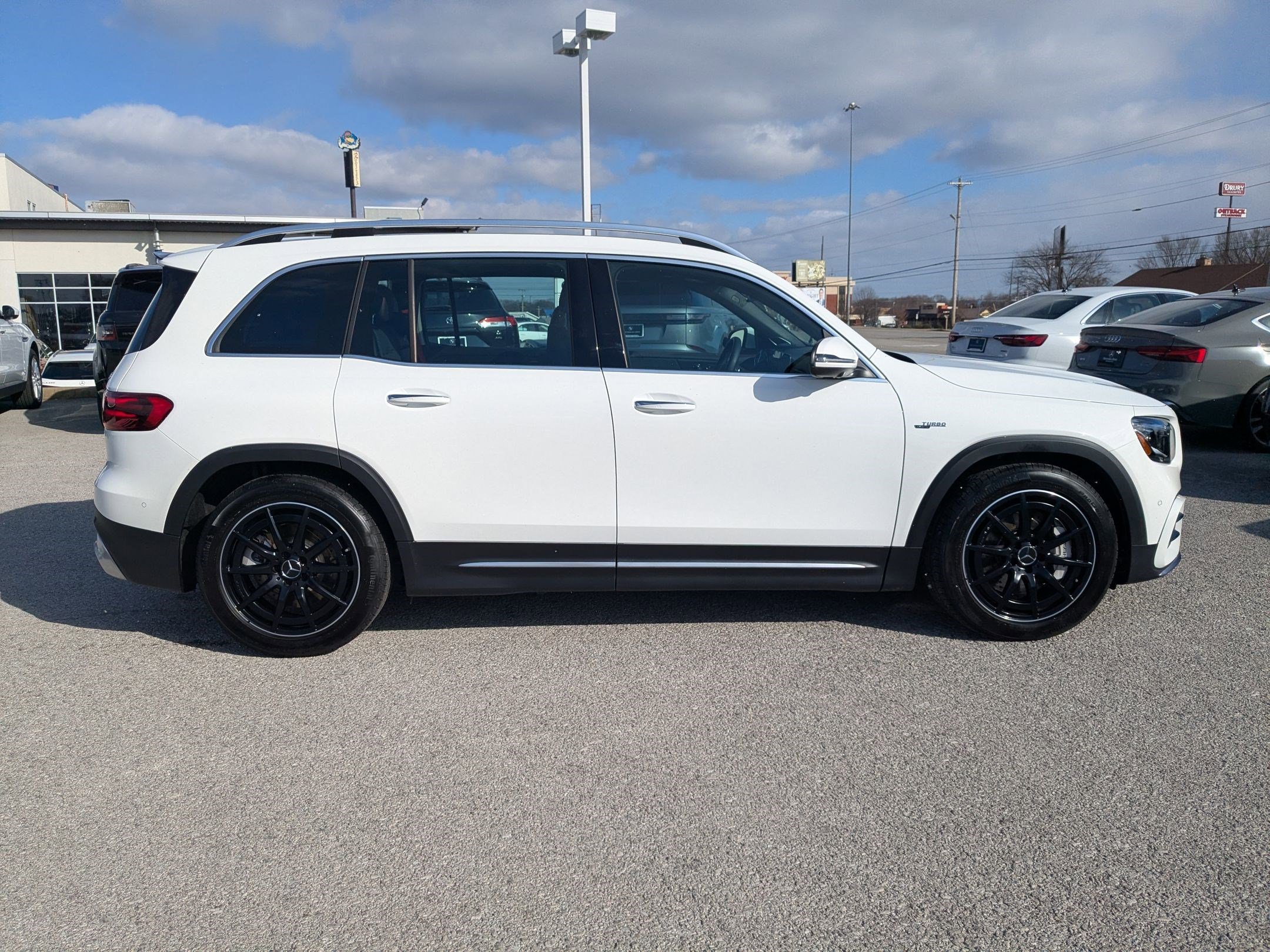 2025 Mercedes-Benz GLB 35 AMG® 4MATIC®. Polar White Exterior. Black MB-Tex / Microfiber with Red Stitching Interior. Notable Options / Features Include : AMG Performance Steering Wheel in Nappa Leather, 19 AMG 10-Spoke Matte Black Wheels, Red Seat Belts, Garage Door Opener, Blind Spot Assist, Panorama Sunroof, 10.25 Instrument Cluster Display, AMG RIDE CONTROL Sport Suspension, Surround View Camera, Burmester® Surround Sound System, Multi-Color Ambient Lighting and much more! Mercedes-Benz Certified Pre-Owned Details: Warranty Deductible: $0, Includes Trip Interruption Reimbursement and 7 days/500 miles Exchange Privilege, Limited Warranty: 12 Month/Unlimited Mile beginning after new car warranty expires or from certified purchase date, Roadside Assistance, 165+ Point Inspection, Transferable Warranty, Vehicle History. Located at Mercedes-Benz / BMW Of Bowling Green. 325 Three Springs Rd, Bowling Green, KY, 42104. Contact Us Today @ 270-745-0001 & Reserve This Unit Before It's Gone!