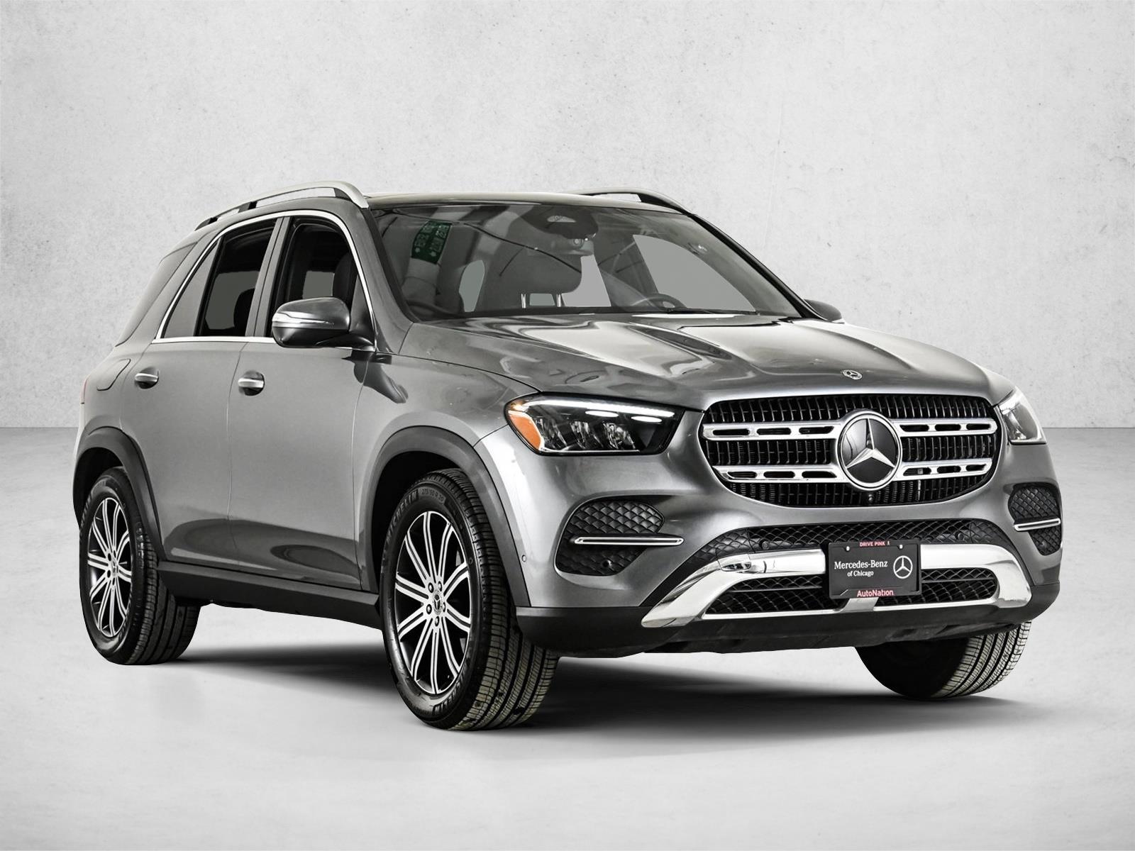 Certified 2025 Mercedes-Benz GLE 350 4MATIC SUV. Selenite Grey Metallic with Black MB-Tex and Exclusive Trim. Panorama Power Tilt/Sliding Sunroof, Winter Package, Load Sill Protection, Natural Grain Grey Oak Trim, and 20" Multispoke Wheels. This vehicle features a mild hybrid powertrain, premium Burmester audio with Dolby Atmos, and a comfortable interior with ventilated front seats. The GLE is known for its impressive performance, comfortable ride, and advanced technology. Accessories and color may vary. Dealer not responsible for errors or omissions.