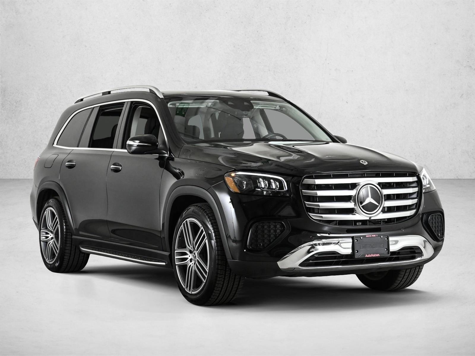 Certified X Loaner 2025 GLS450W4 All Wheel Drive in Obsidian Black/Black Leather with Captain Chairs (6-Seater) Pinnacle Trim, Heated Steering Wheel, Trailer Hitch, 5-Zone Climate Control, Illuminated Brushed Aluminum Running Boards, Soft-Close Doors, Natural Grain Grey Oak Wood Trim Load Sill Protector & 21 Triple 5-Spoke Wheels.