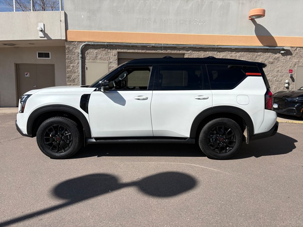 The 2025 Nissan Armada PRO-4X 4WD is a stunning blend of performance, technology, and safety features. With a powerful 3.5L V-6 gasoline direct injection engine delivering an impressive 425HP and coupled with a 9-speed automatic transmission, the Armada is designed for those who crave both adventure and comfort. One of the standout features of the Armada PRO-4X is its hands-on steering assist/lane centering. This advanced system allows you to set your speed and forget about the stresses of road trips, as it automatically maintains your lane and a safe distance from other vehicles. Its like having a co-pilot by your side, ensuring a safe and enjoyable driving experience. Safety is paramount in the Armada, highlighted by its forward collision mitigation system. This feature continuously scans the road ahead, ready to activate safety measures if an impending impact is detected, helping reduce the severity of accidents. Coupled with front pedestrian impact prevention, which actively monitors for pedestrians, the Armada ensures that you are protected from all angles. Additionally, the automatic curve slowdown cruise control offers a unique GPS-linked experience. It intelligently adjusts your speed when approaching curves or hills, reducing driver fatigue and enhancing fuel efficiency. For those who love connectivity, the mobile hotspot feature allows you to stay connected on the go, making it easier to navigate while enjoying internet access without using your mobile data. The rear camera provides an extra set of eyes when reversing, enhancing safety by displaying clear images of your surroundings. Complementing this is the lane departure prevention system, which actively helps keep you within your lane, ensuring a safer journey. Further enhancing safety, the active blind spot system alerts you to vehicles in your blind spots, significantly reducing the risk of lane change accidents. Lastly, the rear collision mitigation system monitors the area behind you, preparing for any potential rear-end collisions. This comprehensive suite of safety features makes the 2025 Nissan Armada PRO-4X 4WD an ideal choice for families and adventure-seekers alike. In summary, the 2025 Nissan Armada PRO-4X 4WD is a powerful SUV that emphasizes safety, connectivity, and performance, making it a top contender in its class. Experience the ultimate in driving confidence and comfort with the Armada today!