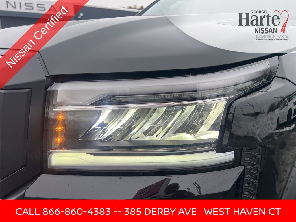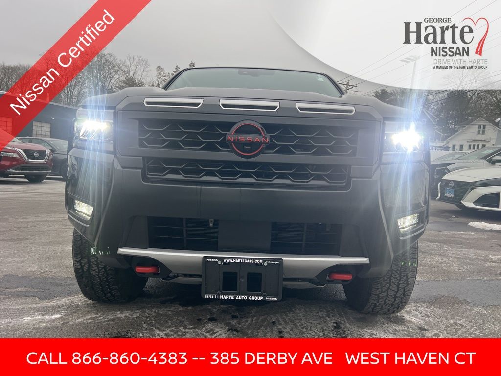 2025 Nissan Frontier PRO-4X 4WD Crew Cab for Sale Near New Haven, CT. Finished in Super Black, this 2025 Nissan Frontier PRO-4X 4WD is a rugged, fully equipped midsize pickup with exceptionally low miles and extensive factory-backed protection. With just 5,018 miles, this One-Owner, Clean CarFax Frontier offers near-new condition at a substantial value compared to new pricing. Under the hood is Nissans proven 3.8L V6, delivering strong performance through a 9-speed automatic transmission and advanced 4WD system, making it equally capable on job sites, trails, and daily commutes. As a PRO-4X, this truck is engineered for off-road confidence while retaining modern comfort and technology. This Frontier is Nissan Certified Pre-Owned, meaning it has passed a rigorous 167-point inspection and includes long-term warranty coverage and roadside assistance for added peace of mind.