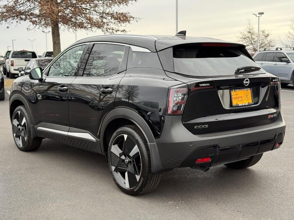 CARFAX One-Owner. Certified. Super Black 2025 Nissan Kicks 4D Sport Utility SR 2.0L DOHC AWD CVT with Xtronic Clean CARFAX. We Make AMAZING Happen at St. Charles Nissan. Serving the St. Charles County and St. Louis Metro area since 1979! New, Used, and Certified Vehicles Advertised Price does not include dealer installed accessories. Prices do not include additional fees and costs of closing, including destination fee, government fees and taxes, any finance charges, $620 administration fee, any emissions testing fees or other fees. Contact dealer for most current information. *Pictures, options and mileage are deemed reliable, but not guaranteed. All rebates and discounts have been deducted from sale price including destination to meet the requirements of the manufacturer. Low Price Promise!! Stop in today to find out why your friends and neighbors buy thousands of cars from us each year! *Customers may not qualify for all rebates used in determining sale price. Must finance through Nissan Motor Finance for special APR & some incentive programs. We carry the largest Nissan inventory in the state of Missouri and back up our commitment to offer the greatest selection and purchasing convenience to our customers. You will find no dealer mark-ups or addendums to the manufacturer's sticker prices here. We mean it when we say & No Gimmicks - No Games! We attempt to make your buying experience straight-forward. St. Charles Nissan is not responsible for any errors on vehicle options.