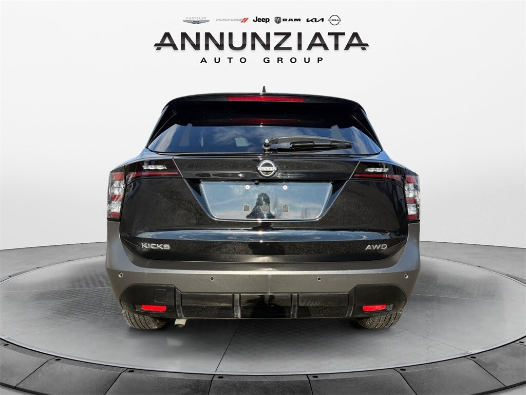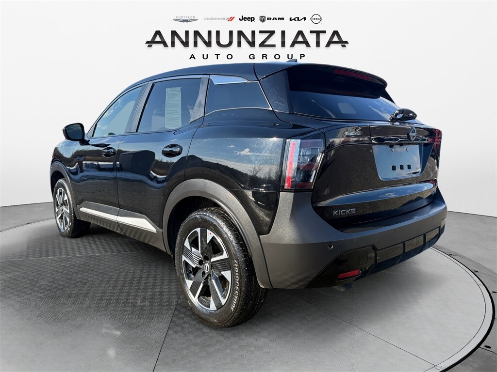 CARFAX One-Owner. Clean CARFAX. Certified. Super Black 2025 Nissan Kicks SV AWD 2.0L DOHC. Recent Arrival! 27/34 City/Highway MPG. Nissan Certified Details: Vehicle History, Transferable Warranty, 7 Year/100,000 Mile Limited Warranty, 24/7 Hour Roadside Assistance, Carfax Vehicle History Report, Plus 1 Year Pre-Paid Maintenance Included. Gas Powered Nissan Models Only. 167 Point Inspection. Limited Warranty: 84 Month/100,000 Mile (whichever occurs first). Roadside Assistance. Warranty Deductible: $100.