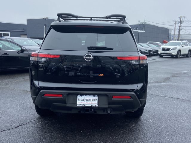 Only 7,349 Miles! Delivers 23 Highway MPG and 20 City MPG! This Nissan Pathfinder boasts a Premium Unleaded V-6 3.5 L/213 engine powering this Automatic transmission. Super Black, Charcoal, leatherette-appointed seating surfaces -inc: unique centers and stitching, [L94] Rock Creek as floor liners & cargo area protector. This Nissan Pathfinder features the following options. [K11] Rock Creek roof rack, [B92] Black Splash Guards (set of 4), wireless phone connectivity, window grid and fixed antenna, wheels: 18 x 8J machined alloy w/black finish -inc: beadlock design, vehicle dynamic control (VDC) electronic stability control (ESC), variable intermittent wipers, valet function, urethane gear shifter material, trip computer. Stop by today. A short visit to Nissan of Garden City located at 316 N Franklin St, Hempstead, NY 11550 can get you a dependable Pathfinder today!