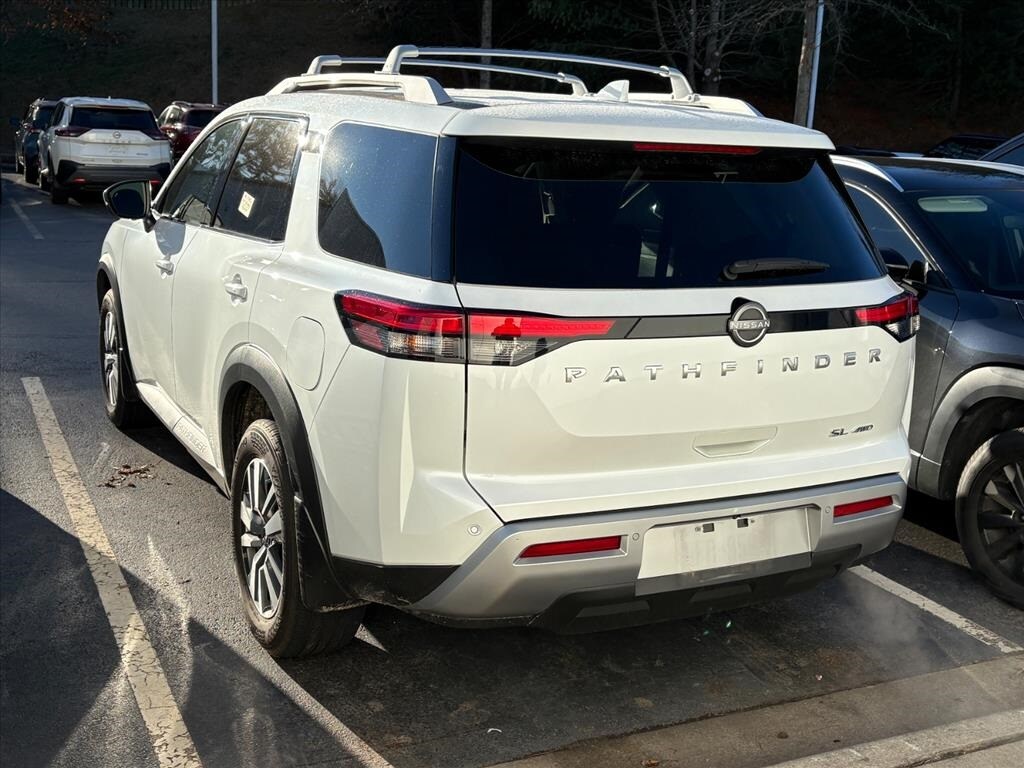 CARFAX One-Owner. Available at Fred Anderson Nissan of Asheville. Call us today at 828-252-0000. Still under factory warranty. FREE oil changes! Back up camera, auto-dimming rear-view mirror, automatic temperature control, cross bars, exterior parking camera rear, fully automatic headlights, heated front bucket seats, heated front seats, heated steering wheel, navigation system: NissanConnect with Navigation and Services, NissanConnect featuring Apple CarPlay and Android Auto, NissanConnect with Navigation and Services, power driver seat, power liftgate, power steering, power windows, remote keyless entry, steering wheel mounted audio controls, wheels: 18" x 8J Machined Alloy. Recent arrival! Clean CARFAX. 2025 Nissan Pathfinder SL Everest White Pearl Tricoat. 4WD 9-Speed Automatic 3.5L V6 DOHC 21/27 City/Highway MPG. This vehicle is Certified Used Nissan and has gone through a 167 point quality assurance inspection by a highly trained technician to receive coverage backed by Nissan. Nissan Certified Used Vehicles receive the following: 7 year/100,000 mile Limited Powertrain Warranty, 24 hour Emergency Roadside Assistance (term specified by CPO program), Car Rental Reimbursement and Towing Benefit, SiriusXM Satellite Radio with 3-month Trial Subscription, Optional Security+Plus(R) Extended Protection Plan. Preferred Interest Rates. Call us at 828-252-0000, go to www.andersonnissan.com, or visit us at Fred Anderson Nissan of Asheville - 629 Brevard Rd Asheville, NC 28806 to learn more! Our #1 goal is to help you find the vehicle you love at a price you can afford wrapped in a deal you don’t want to walk away from.