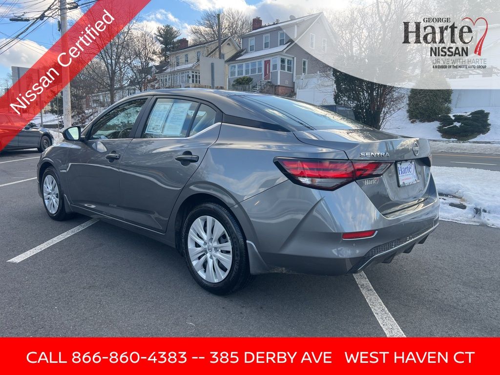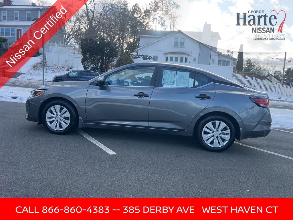 George Harte Nissan 4.7 Rated Nissan Dealer with Over 2,290 Google Reviews Family-Owned and Operated in West Haven, Connecticut Since 1953 Certified 2025 Nissan Sentra S One Owner. Clean Carfax. Fuel-Efficient Sedan If you are searching for a certified 2025 Nissan Sentra S for sale in Connecticut, this low-mileage sedan delivers outstanding value, modern technology, and excellent fuel efficiency. Finished in Gun Metallic with a Charcoal cloth interior, this one-owner, clean Carfax Nissan Sentra has service records available and has passed our certification inspection for added peace of mind. Powered by a reliable 2.0L 4-cylinder engine paired with a CVT with Xtronic and front wheel drive, the 2025 Nissan Sentra S offers smooth performance and impressive fuel economy rated at 30 MPG city and 40 MPG highway. With only 4,770 miles, this certified used Nissan Sentra is an excellent choice for commuters, first-time buyers, or anyone looking for a dependable and efficient sedan near West Haven, New Haven, Milford, or anywhere in Connecticut. The Nissan Sentra S is well equipped with the features drivers want for everyday comfort and connectivity. Highlights include NissanConnect with Apple CarPlay and Android Auto, backup camera, remote keyless entry, steering wheel mounted audio controls, four wheel independent suspension, traction control, and advanced safety systems designed to provide confidence on every drive. If you are looking for a certified 2025 Nissan Sentra S for sale near West Haven or anywhere in Connecticut, this sedan offers exceptional efficiency, low mileage, and certified confidence. Buy with confidence. Call 203-392-2131 today to schedule your test drive at George Harte Nissan.