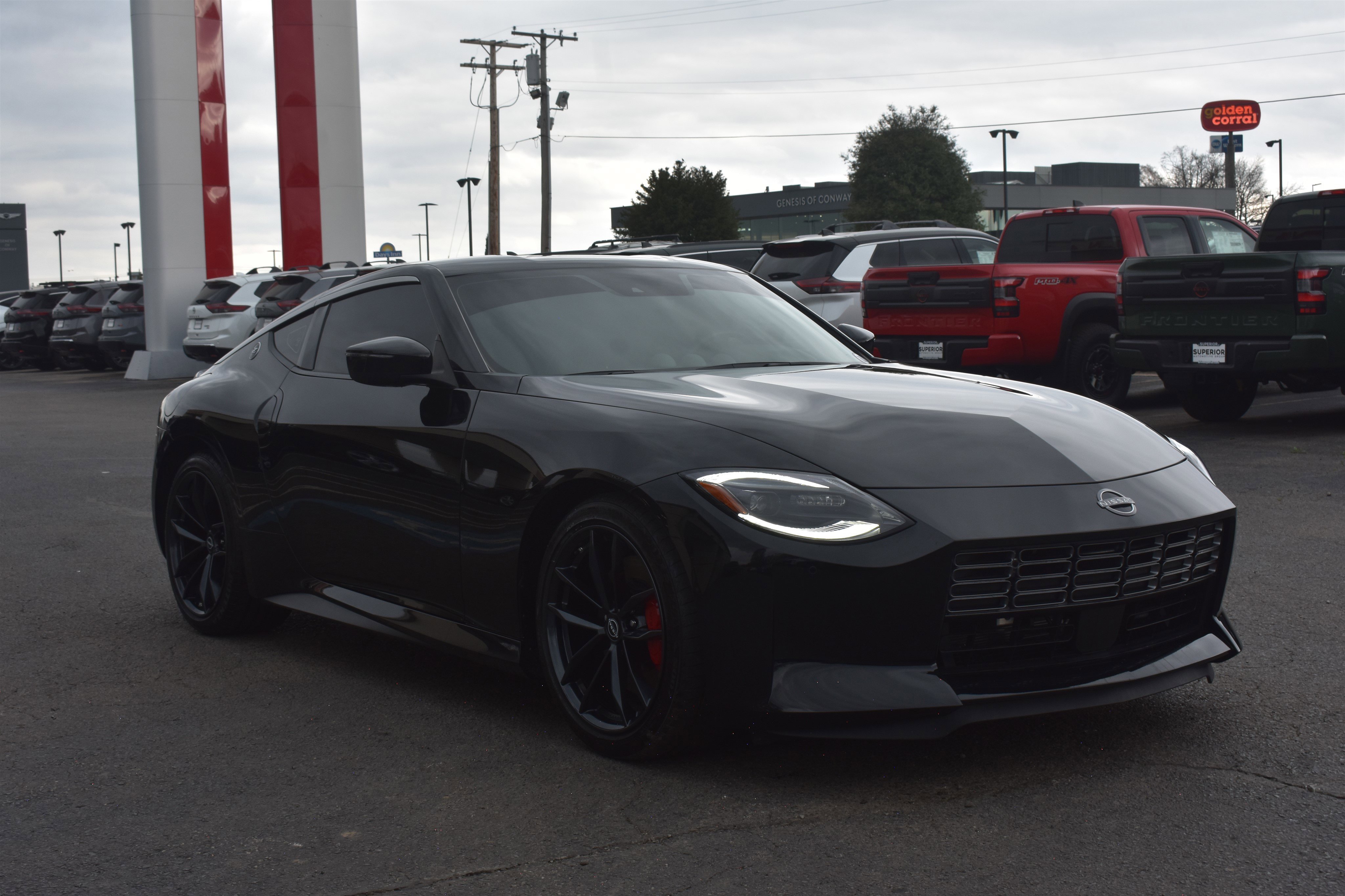 Experience the thrill of a modern icon with this stunning 2025 Nissan Z Performance. Dressed in the deep, lustrous Black Diamond Pearl, this RWD coupe is a love letter to driving enthusiasts. Under the sculpted hood lies a potent 3.0L Twin-Turbo V6, delivering a heart-pounding 400 horsepower and 350 lb-ft of torque. Paired with a lightning-fast 9-speed automatic transmission with paddle shifters, the Z Performance offers a visceral connection to the road that few cars can match. With its CARFAX One-Owner history and a clean record, this is your chance to own a piece of automotive history that's virtually brand new. The Performance trim isn't just a badge it's a mechanical upgrade. This Z comes factory-equipped with a Mechanical Limited-Slip Differential, larger Akebono performance brakes with red calipers, and a specially tuned suspension for razor-sharp handling. Rolling on 19-inch RAYS super-lightweight forged alloy wheels, this car is designed to carve through Arkansas backroads with surgical precision. The front and rear spoilers aren't just for show; they provide the high-speed stability you need when the needle climbs. Inside, the Z Performance balances its raw power with a cabin full of premium luxury. You'll be cradled in Heated Leather-Appointed Sport Seats with synthetic suede inserts that keep you planted during spirited cornering. The driver-focused cockpit features a 12.3-inch digital dashboard with three distinct display modes and the iconic triple pod analog gauges on the dash a nod to the Z's heritage. The Bose 8-Speaker Premium Audio System with Active Noise Cancellation ensures your soundtrack is as crisp as the engine's exhaust note.