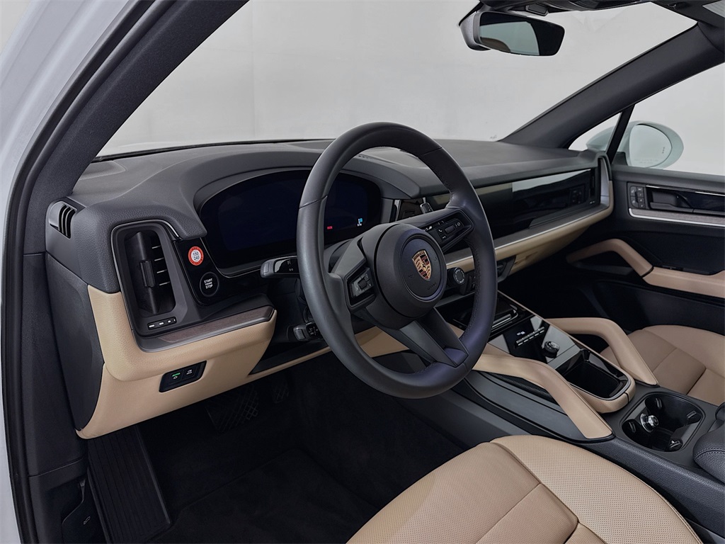Available now! 2025 Porsche Cayenne Base SUV White with Mojave Beige over black carpets. Beautiful 1-owner local car with 11,800 miles. Loaded Premium Plus Package with the Panoramic Moonroof, heated and ventilated front seats and heated rear seats, Bose premium sound package, LED headlights, 4-zone climate control and Adaptive Cruise Control, plus the roof rail system, Sport Tailpipes, 21" Spyder Design Wheels in gloss black, heated windshield and more! Clean CARFAX. Certified. Porsche Approved Certified Pre-Owned Details: Includes Trip Interruption reimbursement, Warranty Deductible: $0, Transferable Warranty, Multipoint Point Inspection, Vehicle History, Limited Warranty: 24 Month/Unlimited Mile beginning after new car warranty expires or from certified purchase date, Roadside Assistance. Black/Mojave Beige w/Leather Seat Trim with Two-Tone Leather Interior.