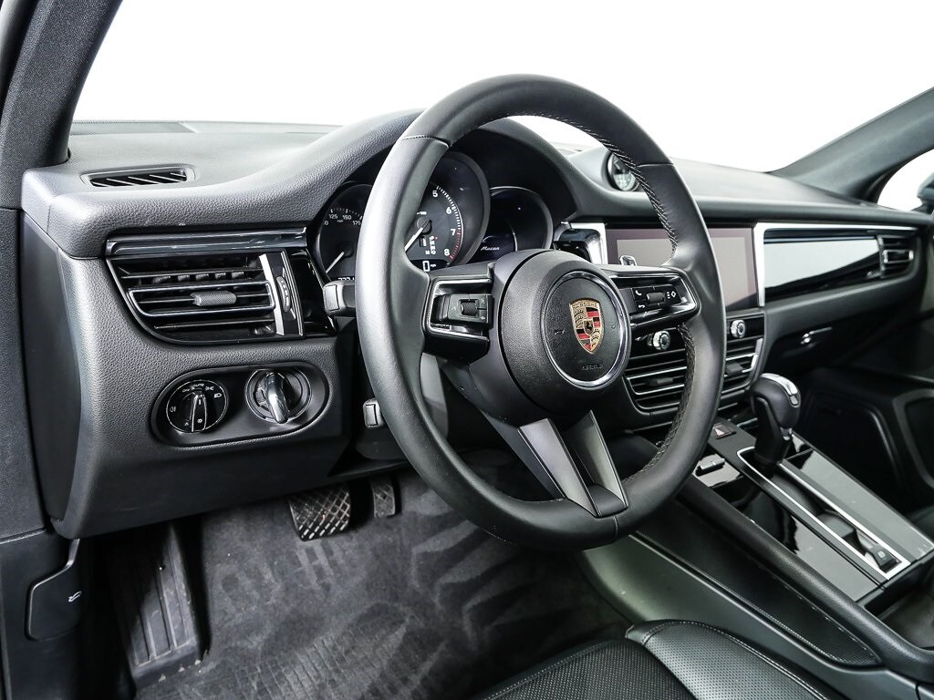 Standard Interior in Black. Premium Package Plus. Panoramic Roof System. Power Seats (14-way) with Memory Package. Heated Seats (Rear). Ventilated Seats (Front). LED Headlights incl. Porsche Dynamic Light System Plus (PDLS+). Lane Change Assist (LCA). Roof Rails in High Gloss Black. Trailer Hitch without Tow Ball. Under Door Puddle Light Projectors. 19" Macan Design Wheels. Porsche Crest on Headrests (Front). Heated Steering Wheel. Electric Steering Column. BOSE Surround Sound System. Surround View.