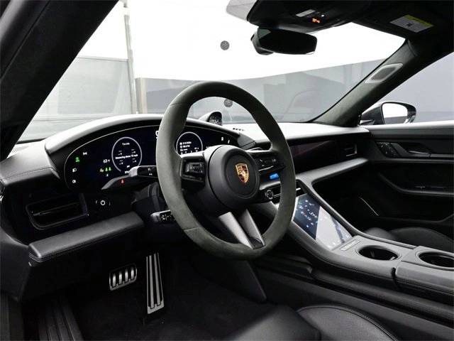 Clean Carfax. 2025 Taycan Turbo GT. Leather interior in black. Porsche Design Subsecond Clock. Porsche Ceramic Composite Brakes with Calipers in High Gloss Black wheels painted in Satin Neodyme. Heated GT Sport steering wheel in Race-Tex with trim in Matte Carbon Fiber. Mode switch are deleted. Seat backrests in leather. Heated seats (rear). Ventilated seats (front). Dashboard end trims in leather. Center console trim in leather - black. Storage package. Pedals in aluminum. Door-sill guards in Matte Carbon Fiber, illuminated i.c.w. inner door-sill guards in leather or Race-Tex. Inner door-sill guards in Race-Tex. Passenger display. Burmester 3D high-end surround sound system. Mobile charger. Preparation for personalized door-sill guards, illuminated HD-Matrix design LED headlights under door puddle light projectors, light strip with illuminated "Porsche" logo, panoramic roof with variable light control, head-up display, surround view. Air quality system. Preparation for Porsche dashcam (front and rear). Porsche InnoDrive incl. Adaptive Cruise Control and Active Lane Keep.