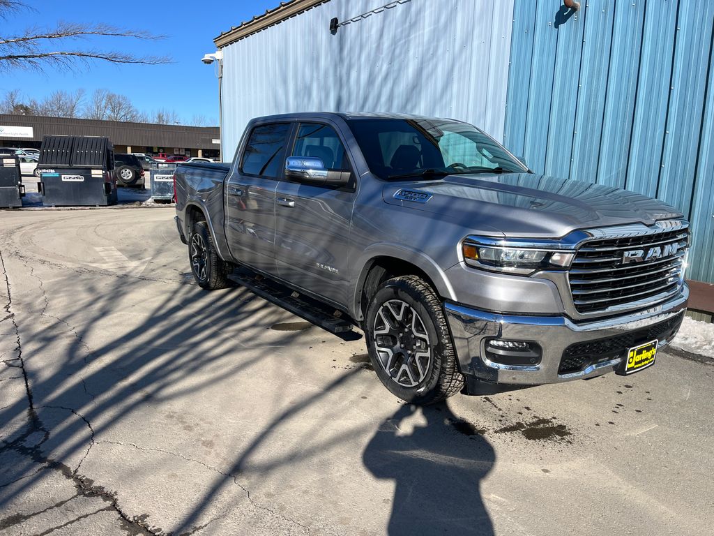 Discover the remarkable 2025 Ram 1500 Laramie, a true testament to power, style, and uncompromising capability. This exceptional vehicle is more than just a truck—it's a masterpiece of engineering and design, ready to elevate your driving experience to new heights. Boasting a stunning Silver exterior and a host of premium features, the 2025 Ram 1500 Laramie is a true standout in its class. Powered by a robust 3.0L I6 engine and equipped with 4-Wheel Drive, this Ram 1500 Laramie delivers the perfect balance of power and efficiency, with an impressive 17 city / 24 highway MPG rating. Whether you're conquering the open road or tackling challenging terrain, this truck is built to handle it all with ease. Step inside the cabin and you'll be greeted by a spacious and meticulously crafted interior, designed to provide the ultimate in comfort and convenience. The leather-trimmed bucket seats, heated and ventilated for your year-round enjoyment, offer exceptional support and luxury. The Uconnect 5 infotainment system with a massive 12.0-inch display puts a world of connectivity and entertainment at your fingertips, while the premium audio system ensures an immersive listening experience. Safety is also a top priority in the 2025 Ram 1500 Laramie, with features like Blind Spot Monitoring, Rear Cross-Traffic Alert, and ParkView Rear Back-Up Camera keeping you and your loved ones protected on every journey. This remarkable truck is more than just a vehicle—it's a statement of your discerning taste and unwavering commitment to quality. Experience the unparalleled blend of power, technology, and refinement that the 2025 Ram has to offer.