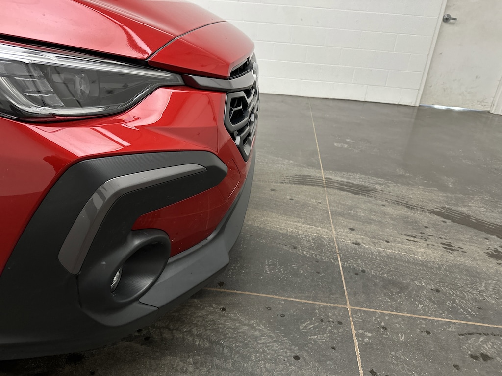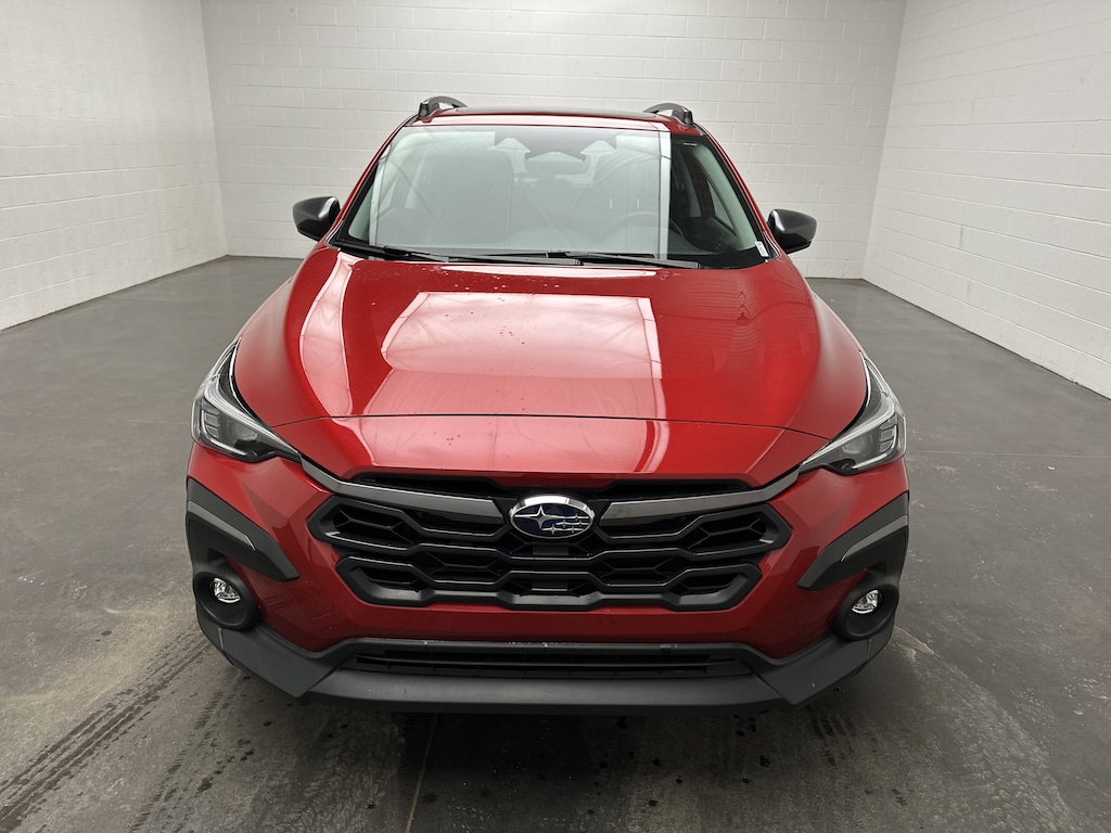 We have for sale on our lot a sharp-looking, 2025 Subaru Crosstrek Limited SUV service loaner. It’s finished in eye-catching Lithium Red Pearl, paired with a Black leather-trimmed interior with subtle orange stitching that gives the cabin a sporty, upscale feel. This Crosstrek currently has just 4,979 miles and is powered by Subaru’s proven 2.5L 4-cylinder Boxer engine running on gasoline, paired with an 8-speed CVT and Subaru Symmetrical All-Wheel Drive. Fuel economy is excellent for an AWD SUV at 27 MPG city and 33 MPG highway, making it easy on your wallet whether you’re commuting daily or heading out for weekend adventures. This Crosstrek is a dealer demo, which means it has been gently driven and meticulously maintained, and the buyer will be the first name on the title. You get the confidence and value of a used price point while still enjoying remaining factory bumper-to-bumper warranty coverage. With extremely low miles and very good overall condition, this is a rare opportunity to save money compared to buying brand new. Even better, this Crosstrek can qualify for tax credit savings when trading in your current vehicle, giving you an additional financial advantage that most new-car purchases simply don’t offer. Designed for drivers who want versatility without sacrificing comfort, the Crosstrek Limited feels confident and composed behind the wheel. Subaru’s AWD system works seamlessly with X-MODE and Hill Descent Control, giving you added reassurance on snow-covered roads, muddy trails, or rainy highways. The ride is smooth and planted, and the elevated driving position gives you a clear view of the road ahead, whether you’re navigating city traffic or exploring back roads. Inside, the cabin feels modern, warm, and thoughtfully designed. Heated leather front seats provide cozy comfort on cold mornings, while the power driver’s seat with lumbar support makes long drives feel effortless. The large 11.6-inch touchscreen anchors the dash, putting navigation, music, and apps right at your fingertips with wireless Apple CarPlay and Android Auto. The Harman Kardon premium audio system fills the cabin with rich, immersive sound, and the power moonroof lets fresh air and sunlight pour in, making every drive feel more open and enjoyable. Safety is a major strength of this Crosstrek. Subaru EyeSight technology includes adaptive cruise control that glides smoothly through traffic, lane centering assist that helps reduce fatigue on long trips, blind spot monitoring, rear cross-traffic alert, reverse automatic braking, and a clear backup camera that makes parking stress-free. These systems work quietly in the background to help keep you and your passengers protected. With roof rails, all-weather floor liners, generous cargo space, and a practical yet refined interior, this Crosstrek Limited fits active lifestyles, daily commutes, and everything in between.