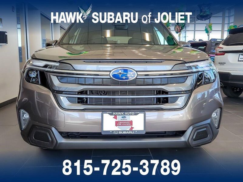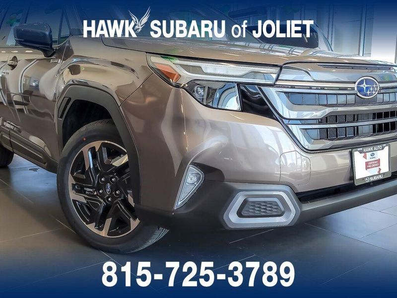 Certified. 2025 Subaru Forester Hybrid Limited Brilliant Bronze Metallic 2.5L 4-Cylinder DOHC 16V AWD Clean CARFAX. Odometer is 3334 miles below market average! Recent Arrival! Come see this 2025 Subaru Forester Hybrid Limited! It's the one you've been longing for! This Forester Hybrid comes equipped with these options. Subaru Certified Pre-Owned Details: 152 Point Inspection, Vehicle History, Transferable Warranty, SiriusXM 3-Month trial subscription, $500 Owner Loyalty coupon & 1 year trial subscription to STARLINK, Warranty Deductible: $0, Roadside Assistance, Powertrain Limited Warranty: 84 Month/100,000 Mile (whichever comes first) from original in-service date. Whether you're looking for a new or used Subaru or Mazda, Hawk Subaru and Hawk Mazda are premier dealerships that specialize in these vehicles to ensure every individual gets the car they've always wanted. As a Subaru and Mazda dealership, we offer a vast selection of new and used models so you can get yourself in a Subaru or Mazda at a price you can afford. Our experienced sales staff works closely with you to determine which model will provide the features and benefits you're looking for. We are the leading provider of Subaru and Mazda vehicles near Bolingbrook, Plainfield, and Lockport.