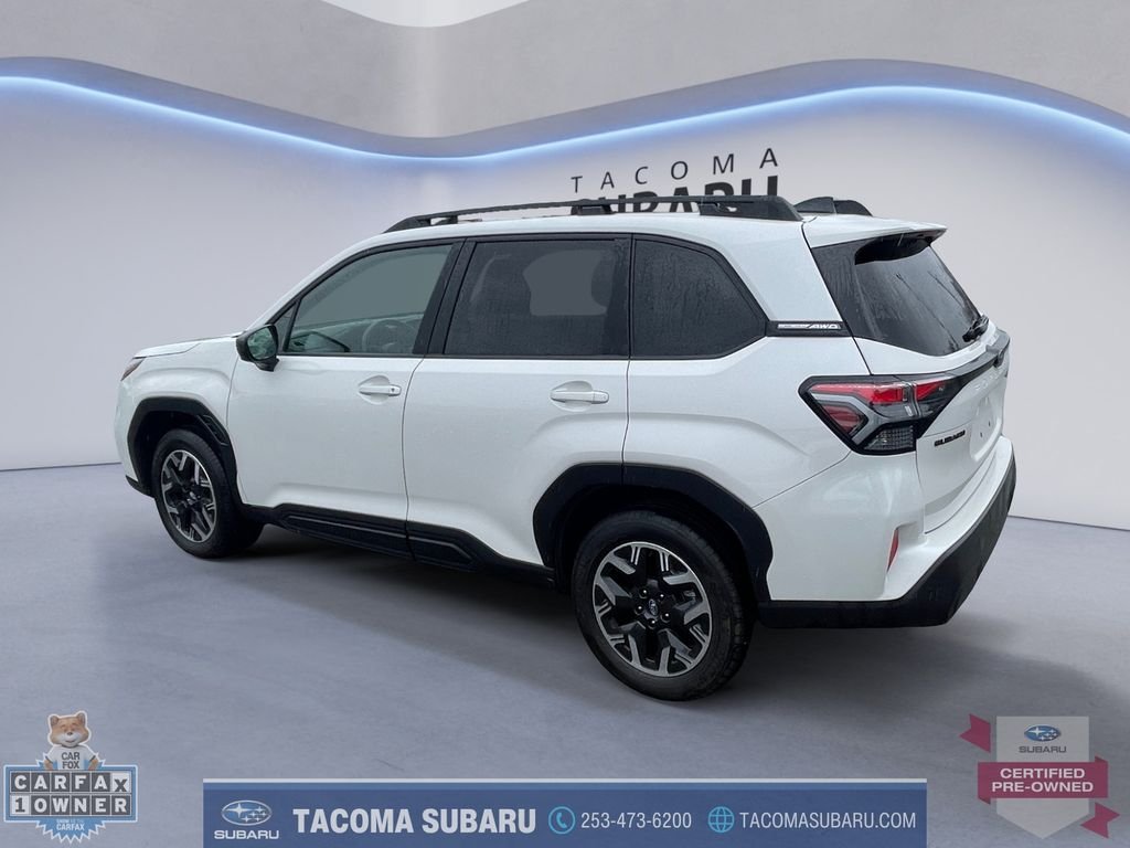 Located at: Tacoma Subaru. 2025 Subaru Forester Premium CPO Subaru Certified, includes warranty. Recent Arrival! Clean Carfax. Carfax One-Owner. 26/33 City/Highway MPG Certified. Subaru Certified Pre-Owned Details: Transferable Warranty, Vehicle History, SiriusXM 3-Month trial subscription, $500 Owner Loyalty coupon & 1 year trial subscription to STARLINK, Warranty Deductible: $0, 152 Point Inspection, Roadside Assistance, Powertrain Limited Warranty: 84 Month/100,000 Mile (whichever comes first) from original in-service date. Thank you for shopping at Tacoma Subaru! For car buyers who are looking for a honest and transparent experience, look no further. The Bruce Titus Automotive Group is a family-owned and operated business that puts customers first. Our goal is to provide a comfortable, hassle-free experience for our customers and to form relationships that last a lifetime. Our commitment to you does not end when you purchase your vehicle. Our transparent service and ownership experience help keep you and your vehicle safe on the road for years to come.