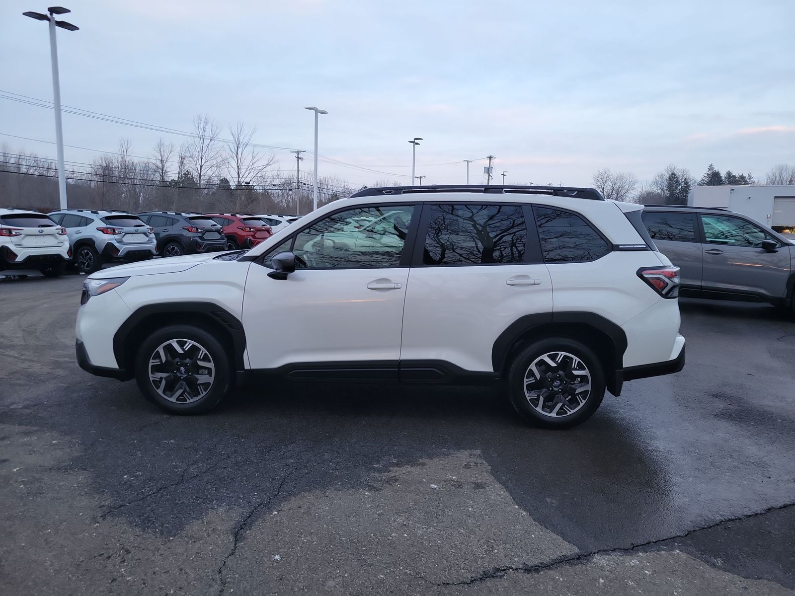 2025 Subaru Forester Premium Crystal White Pearl AWD Lineartronic CVT 2.5L 4-Cylinder DOHC 16V. All vehicles are subject to prior sale. Price excludes applicable tax, title, license, government fees, and $175 dealer document fee. Not responsible for typographical errors. The arrival timeline is an estimate. It may vary due to circumstances beyond Subaru’s or the retailer’s control.