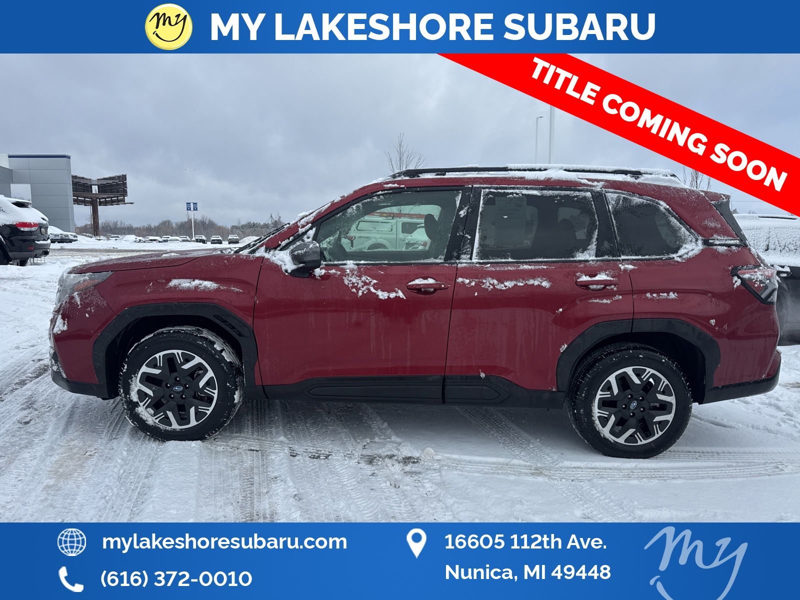 Forester Premium, Crimson Red Pearl, All wheel drive, Apple CarPlay & Android Auto, EyeSight Driver Assist, Heated seats, Lane departure warning, Panoramic moonroof. Certified. Crimson Red Pearl 2025 Subaru Forester Premium AWD Lineartronic CVT 2.5L 4-Cylinder DOHC 16V. My Lakeshore Subaru is your #1 choice in Michigan to get the best price on used vehicles and best value for your trade. The My Lakeshore Subaru team is ready to provide you with a world-class experience, ensuring that you find the perfect vehicle that fits all your needs. Every vehicle has been through a full safety inspection completed by certified technicians and fully detailed. Recent Arrival! 26/33 City/Highway MPG.