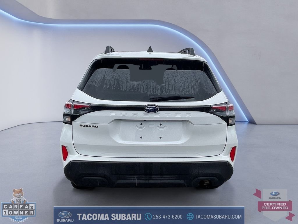 Located at Tacoma Subaru. 2025 Subaru Forester Premium CPO Subaru Certified, includes warranty. Recent Arrival! New Price! Clean CARFAX. CARFAX One-Owner. 26/33 City/Highway MPG Certified. Subaru Certified Pre-Owned Details: Roadside Assistance, 152 Point Inspection, Transferable Warranty, Powertrain Limited Warranty, SiriusXM trial subscription, STARLINK trial subscription, Vehicle History, Warranty Deductible. Thank you for shopping at Tacoma Subaru! For car buyers who are looking for an honest and transparent experience, look no further. The Bruce Titus Automotive Group is a family-owned and operated business that puts customers first. Our goal is to provide a comfortable, hassle-free experience for our customers and to form relationships that last a lifetime. Our commitment to you does not end when you purchase your vehicle. Our transparent service and ownership experience help keep you and your vehicle safe on the road for years to come.