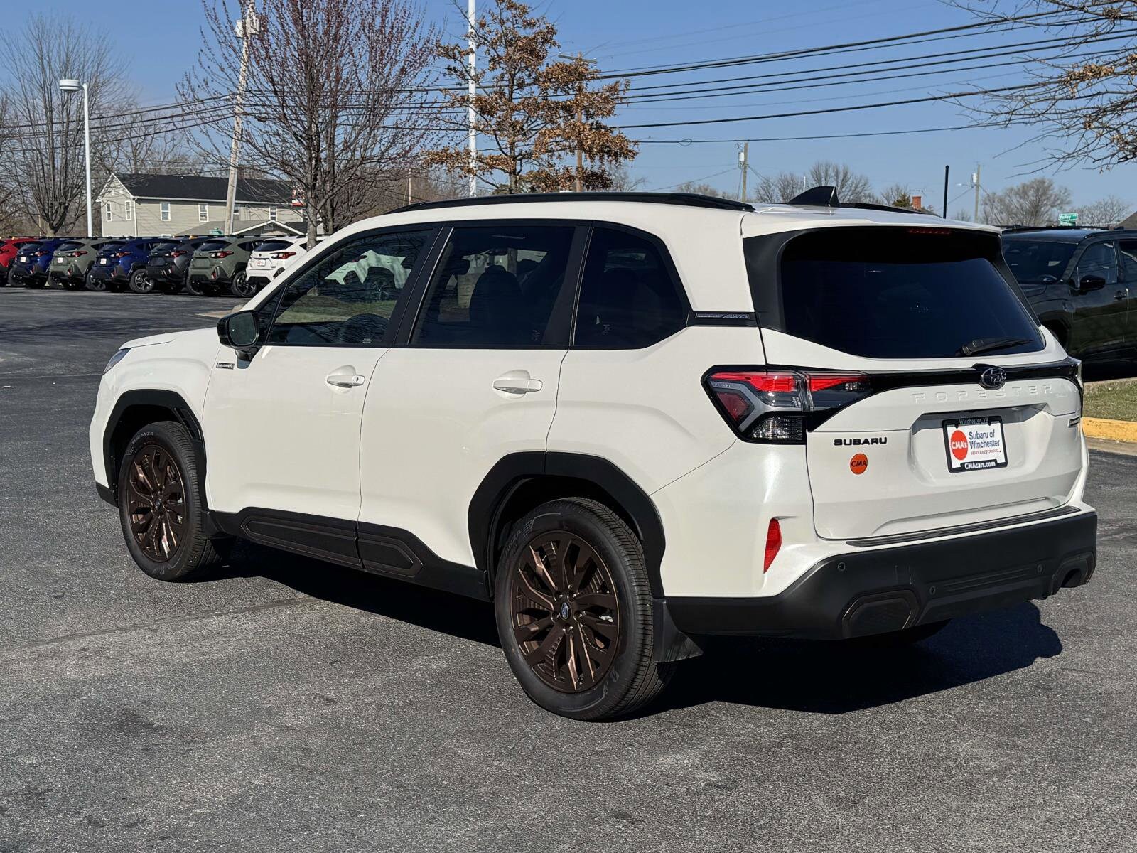 CPO Sport. Certified Pre Owned 2025 Subaru Forester in Crystal White Pearl with a gray interior. This SUV features a 2.5L H-4 hybrid engine with all-wheel drive and a continuously variable automatic transmission. The vehicle offers a comfortable and safe driving experience with advanced safety features and a spacious interior for up to five passengers.