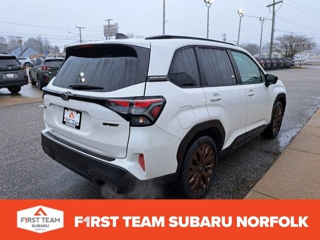 Certified. Crystal White Pearl 2025 Subaru Forester Sport AWD Lineartronic CVT 2.5L 4-Cylinder DOHC 16V. Recent Arrival! 25/32 City/Highway MPG. The 2025 Subaru Forester Sport is anticipated to be a stylish and capable SUV that blends Subaru's renowned all-wheel-drive capability with sporty design elements and modern features. While specific details for the 2025 model may not be fully available yet, based on recent trends, here's what you can expect. The 2025 Subaru Forester Sport is expected to be a versatile, safe, and stylish SUV ideal for urban driving and outdoor adventures. Would you like help with pre-orders, detailed features, or upcoming reviews? First Team Automotive has been family owned and operated since 1946. Today, 3rd Generation Owner and Chief Operating Officer, Ashton Lewis, Jr. Leads our company that includes First Team Hampton Chevrolet, First Team Toyota, First Team Honda, First Team Subaru Norfolk, First Team Subaru Suffolk, and First Team Kia in Hampton Roads. At First Team Automotive, we are proud to have developed a reputation of serving our customers and community for the last 75+ years. Our commitment to you starts even before you enter our dealership, and continues long after you drive off of the lot. We are committed to being a "different" kind of car dealer and remain committed to helping you Enjoy Your Ride as a member of the First Team family. As part of our commitment to you, we are proud to offer our First Team Forever program. First Team Automotive is the only dealer group in Hampton Roads to offer First Team Forever on all new and most pre-owned vehicles. When you purchase a new or pre-owned vehicle with First Team Forever, you receive oil changes, state inspections, parts and service guarantee, and towing assistance - all *Forever*!