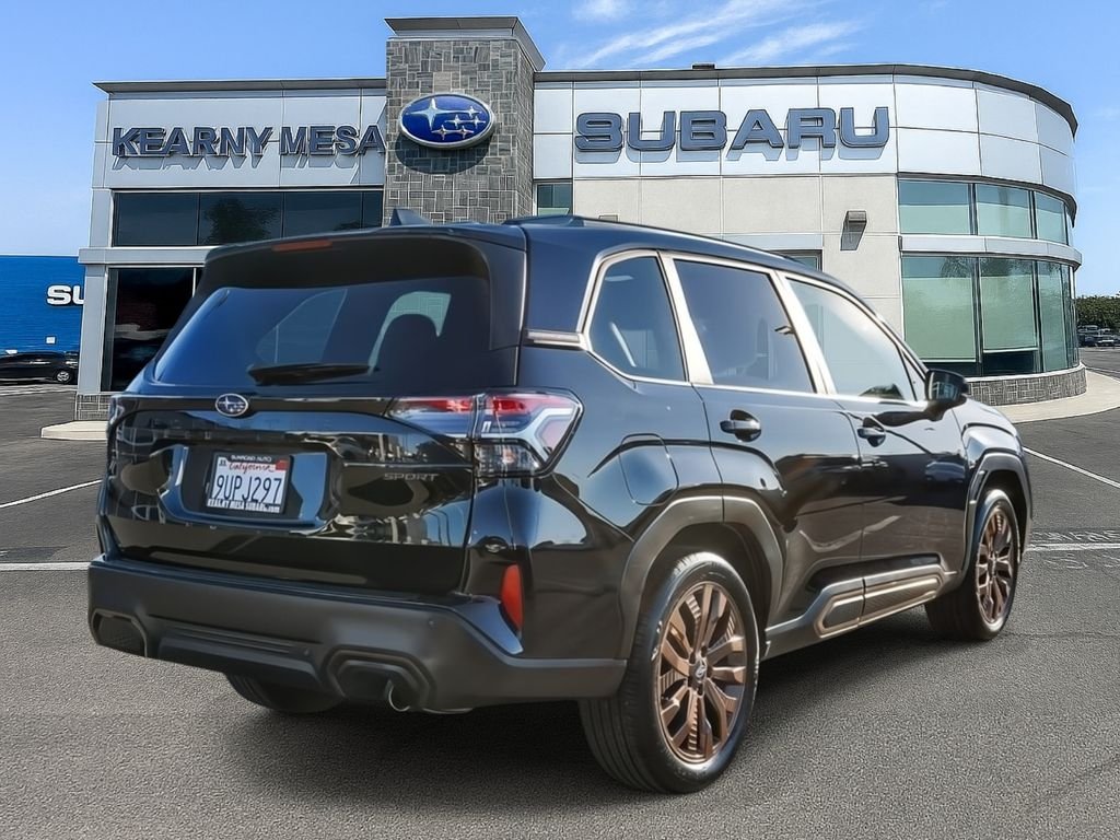 Subaru Certified Pre-Owned 2025 Subaru Forester Sport – AWD – Low Miles – Kearny Mesa San Diego. Now available at Kearny Mesa Subaru in San Diego, this Subaru Certified Pre-Owned 2025 Subaru Forester Sport offers bold styling, advanced safety, and like-new condition with just 8,209 miles. If you're searching for a CPO Subaru Forester Sport in Kearny Mesa, this low-mileage SUV delivers exceptional value backed by Subaru’s trusted certified program. Only 8,209 Miles – Like New. Sport Trim with Unique Exterior & Interior Accents. Subaru EyeSight Driver Assist Technology. Apple CarPlay & Android Auto. Large Touchscreen Display. Backup Camera. Panoramic Sunroof. Roof Rails for Outdoor Gear. Spacious Interior & Cargo Capacity.