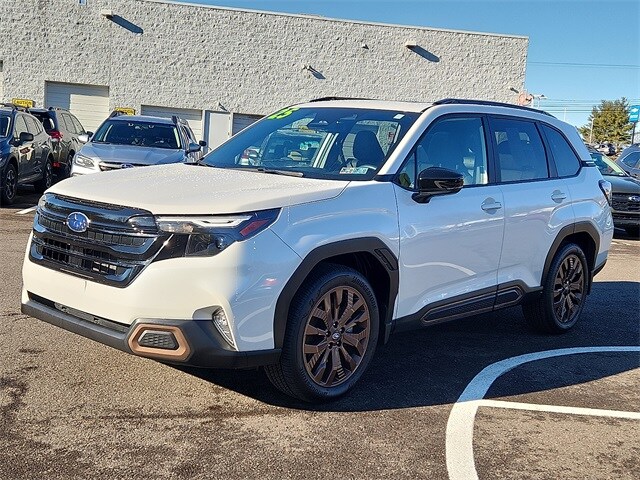 CARFAX One-Owner. Clean CARFAX. Certified. Crystal White Pearl 2025 Subaru Forester Sport AWD Lineartronic CVT 2.5L 4-Cylinder DOHC 16V harman/kardon Audio & Power Rear Gate & RAB, harman/kardon Speaker System, Power Rear Gate, Reverse Automatic Braking (RAB) System. 25/32 City/Highway MPG Subaru Certified Pre-Owned Details: Powertrain Limited Warranty: 84 Month/100,000 Mile (whichever comes first) from original in-service date. 152 Point Inspection. Vehicle History. Roadside Assistance. SiriusXM 3-Month trial subscription, $500 Owner Loyalty coupon & 1 year trial subscription to STARLINK. Transferable Warranty. Warranty Deductible: $0. Stop by and speak to one of our product specialists today!