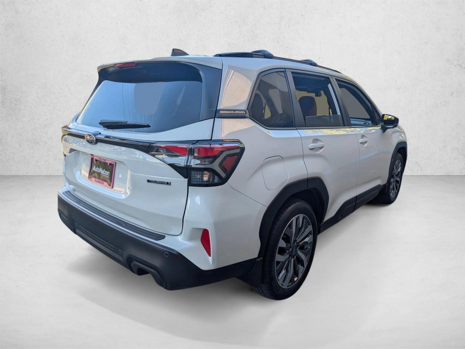 Panoramic Roof. Crossbar Set - Aero. Leather Seats. Navigation System. Splash Guards. Rear Bumper Cover. Rear Seatback Protector. Cargo Net. Sunshade - Windshield. Center Console Tray. Led Upgrade. Lane Keeping Assist. Keyless Start. Rear Spoiler. Cooled Front Seat(S). Crystal White Pearl. Standard Model. Touring Brown; Perforated Leather-Trimmed Upholstery. Leather Seats Crystal White Pearl. Note - For third party subscriptions or services, please contact the dealer for more information. On almost any road condition, this Subaru Forester Touring offers solid performance, reliability, and comfort. Put performance, safety, beauty, sophistication and all the right amenities into a car, and here it is! Now you can own luxury without the luxury price tag! You could spend more on fuel each month than on your vehicle payments, so why not consider one with exceptional fuel economy like this 2025 Subaru Forester. When the Subaru Forester Touring was created, it was automatically enhanced by having the performance ability of all wheel drive. Not only will you notice improved steering and superior acceleration, but you can also rest easy knowing that your vehicle comes standard with increased stability and safety. Marked by excellent quality and features with unmistakable refined leather interior that added value and class to the Subaru Forester Touring.