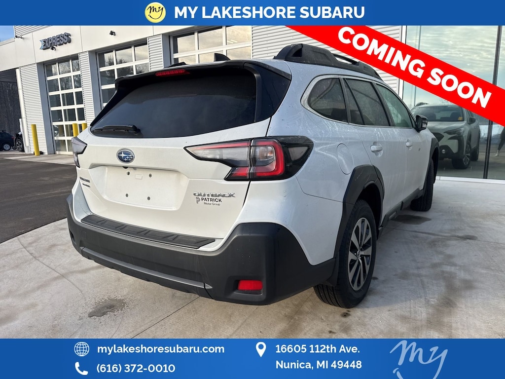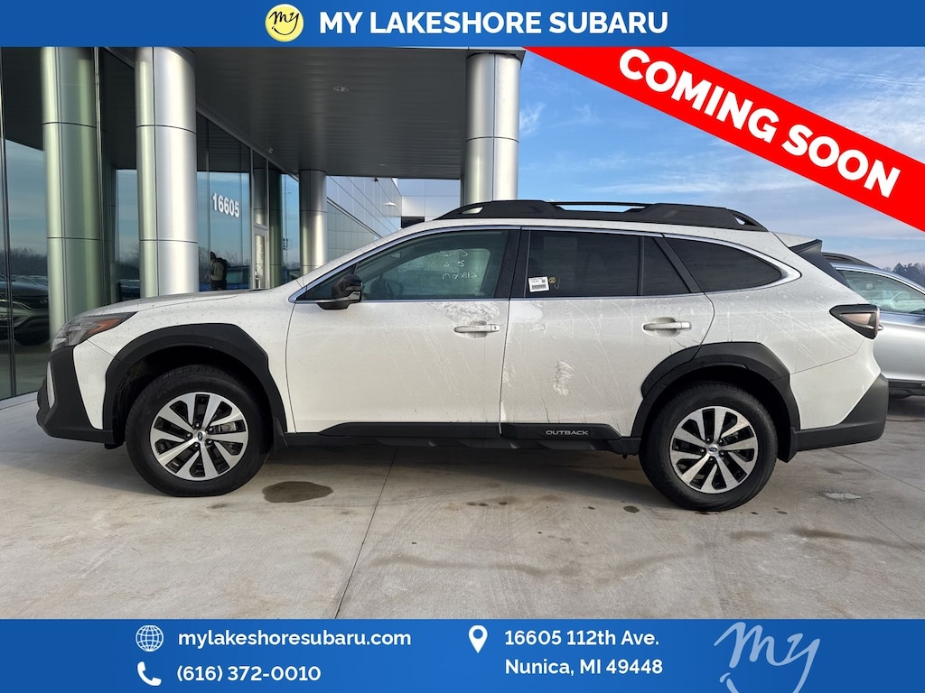 Outback Premium, Crystal White Pearl, all wheel drive, Apple CarPlay & Android Auto, Blind Spot Alert, EyeSight Driver Assist, heated seats, lane departure warning, oil changes for life, rearview camera, Blind Spot Detection, BSD w/RCTA & Keyless Access & Push Button Start, Hands-Free Power Rear Gate, Keyless Access w/Push Button Start, Rear Cross Traffic Alert. Certified. Crystal White Pearl 2025 Subaru Outback Premium AWD CVT Lineartronic 2.5L 4-Cylinder DOHC 16V. My Lakeshore Subaru is your #1 choice in Michigan to get the best price on used vehicles and best value for your trade. The My Lakeshore Subaru team is ready to provide you with a world-class experience, ensuring that you find the perfect vehicle that fits all your needs. Every vehicle has been through a full safety inspection completed by certified technicians and fully detailed. Recent Arrival! 26/32 City/Highway MPG.