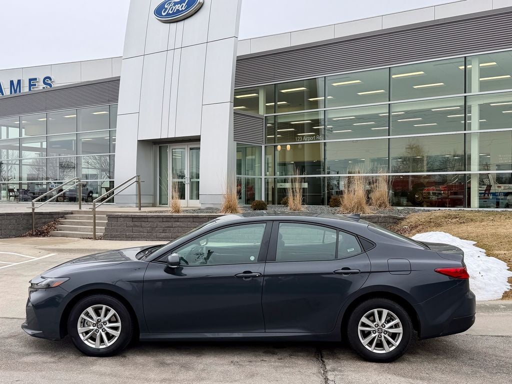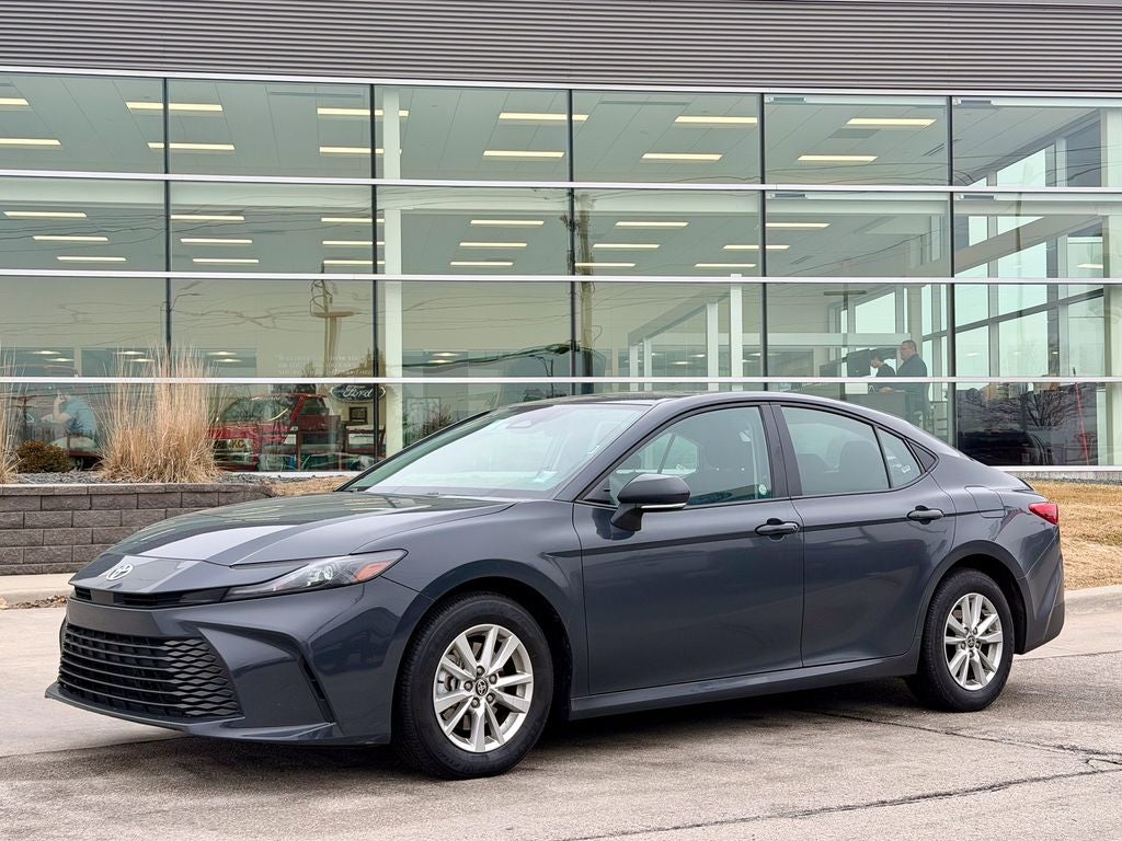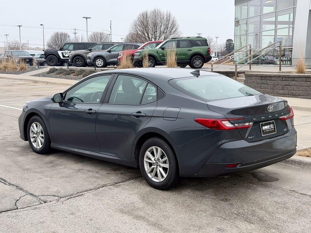 The 2025 Toyota Camry LE offers a refined blend of modern style and exceptional efficiency, finished in a distinctive Heavy Metal with Black accent exterior. Powered by a responsive 2.5L 4-cylinder engine delivering 203 horsepower and 184 lb-ft of torque, this iconic sedan provides smooth, confident performance for daily commuting through its advanced 8-speed automatic transmission and confident front-wheel drive. The well-equipped LE trim outfits the Camry with distinctive 16-inch alloy wheels, all-season touring tires, and a bold, aerodynamic design with black accents. Inside, you'll find premium cloth seating surfaces, a tilt/telescoping steering wheel with audio and cruise controls, and contemporary interior accents. The spacious and thoughtfully designed cabin offers impressive passenger and trunk space, along with dual-zone automatic climate control and an 8-inch touchscreen Toyota Audio Multimedia system. Advanced technology features include the Toyota Audio Multimedia system with wireless Apple CarPlay and Android Auto integration, Bluetooth hands-free connectivity, and available Wi-Fi Connect. The Camry LE also boasts Toyota Safety Sense 3.0 as standard including pre-collision warning and lane departure alert, a rearview camera, and available blind spot monitor for enhanced safety, confidence, and peace of mind on every journey.