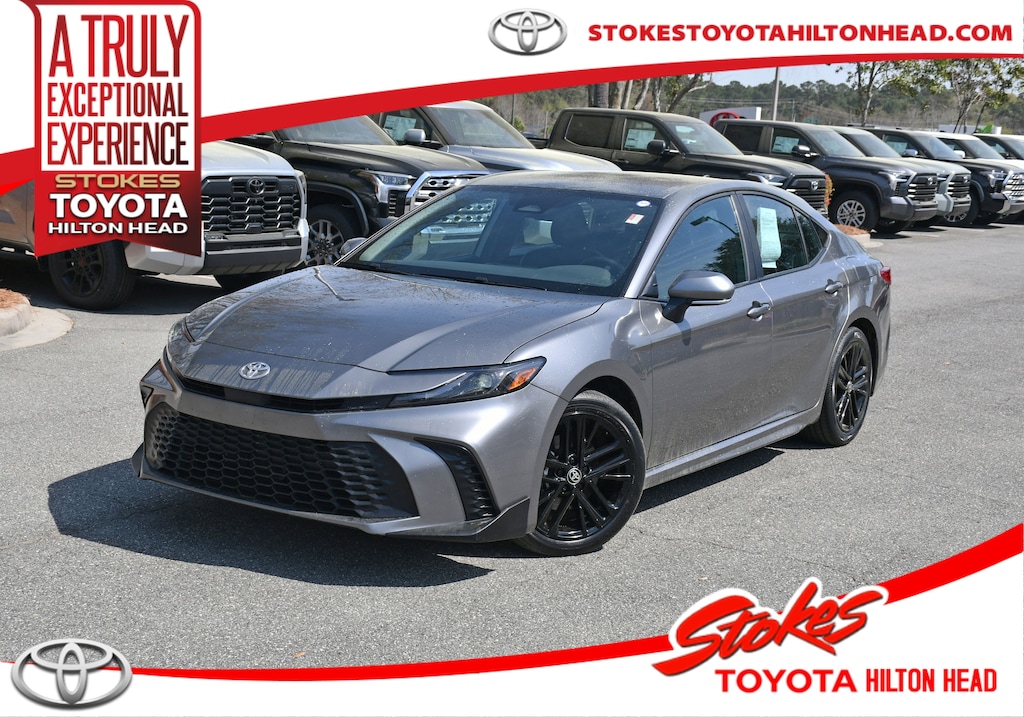 Toyota Certified. Stokes Toyota Hilton Head. 2025 Toyota Camry SE in Heavy Metal, Factory Equipped With. CARFAX One-Owner. Clean CARFAX. Professionally Serviced and Detailed for your Peace of Mind. CALL US TODAY FOR MORE DETAILS OR TO SCHEDULE A TEST DRIVE AT 843.815.0240 OR VISIT US ON THE WEB AT WWW.STOKESTOYOTAHILTONHEAD.COM OR VISIT US AT 100 FORDING ISLAND ROAD, BLUFFTON SC 29910. Peace of mind. Vehicle history report. Title information. Odometer readings. Accident data (if applicable). Service history. Vehicle usage. Recall information (if applicable). Warranty status. Free CarFax report. A name you can trust. Stokes Kia is dedicated to your satisfaction before, during, and after your purchase. We'll go the extra mile to take care of you.