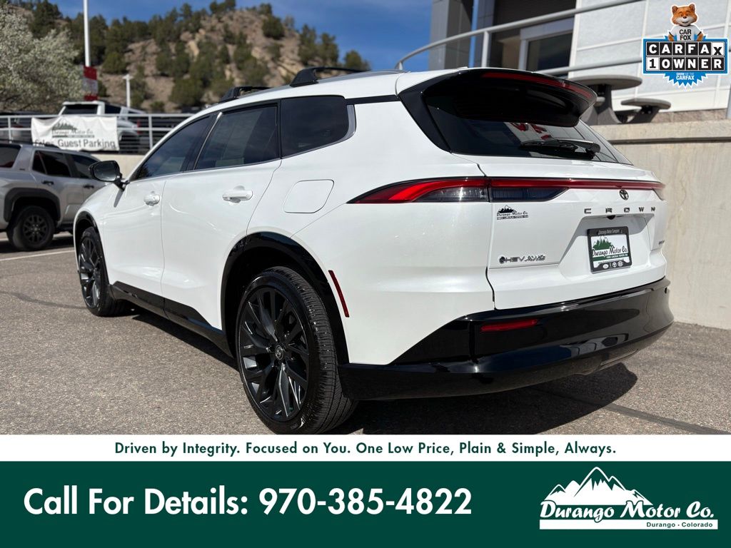 Certified! The 2025 Toyota Crown Signia XLE AWD is a refined and modern hybrid wagon that blends upscale comfort with impressive efficiency and all-weather capability. Powered by a 2.5L I4 DOHC 16V hybrid engine paired with an electronically controlled CVT, it delivers a smooth and quiet ride with strong hybrid performance. With standard all-wheel drive and excellent fuel efficiency, its perfect for both daily commuting and long road trips. Designed with both style and practicality in mind, the Crown Signia features a sleek wagon-like profile and a premium interior that includes dual digital displays, advanced safety technology, heated seating, and a spacious cargo area, offering the comfort of a luxury SUV with the versatility of a wagon. At Durango Motor Company in Durango, Colorado, our non-commissioned sales team is here to help you find the right vehicle at the right price. If youd like more details, extra photos, or a personalized walk-around video, our team is happy to help. Recent Arrival! 39/37 City/Highway MPG Toyota Gold Certified Details: Vehicle History Roadside Assistance Limited Warranty: 12 Month/12,000 Mile Limited Comprehensive Warranty from certified purchase date Roadside Assistance for 7 Year / 100,000 Mile. Standard New-Car Financing Rates Available. Warranty honored at over 1,400 Toyota dealers in the continental U.S. & Canada. Trade-ins accepted. Trouble-free handling of your transaction, including DMV paperwork 160 Point Inspection Powertrain Limited Warranty: 84 Month/100,000 Mile (whichever comes first) from TCUV purchase date Warranty Deductible: $0 Transferable Warranty One low Price, Plain and Simple Always!!