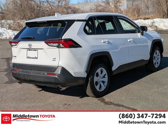 Recent Arrival! Certified. CARFAX One-Owner. Clean CARFAX. 2025 Toyota RAV4 LE AWD 8-Speed Automatic 2.5L 4-Cylinder DOHC Dual VVT-i. AWD, Black w/Fabric Seat Trim. Serving Middletown Connecticut since 1975. 27/34 City/Highway MPG. Toyota Gold Certified Details: Warranty honored at over 1,400 Toyota dealers in the continental U.S. & Canada. Trade-ins accepted. Trouble-free handling of your transaction, including DMV paperwork.