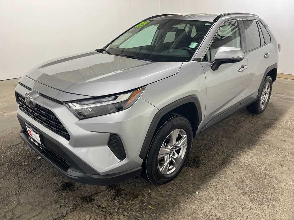 Toyota Gold Certified Certified, AWD, Black Cloth, 4-Wheel Disc Brakes, 6 Speakers, ABS brakes, Air Conditioning, Alloy wheels, AM/FM radio: SiriusXM, Auto High-beam Headlights, Automatic temperature control, Brake assist, Bumpers: body-color, Delay-off headlights, Driver door bin, Driver vanity mirror, Dual front impact airbags, Dual front side impact airbags, Electronic Stability Control, Emergency communication system: Safety Connect (10-year trial), Exterior Parking Camera Rear, Fabric Seat Trim, Four wheel independent suspension, Front anti-roll bar, Front Bucket Seats, Front Center Armrest, Front dual zone A/C, Front reading lights, Fully automatic headlights, Heated door mirrors, Illuminated entry, Knee airbag, Low tire pressure warning, Occupant sensing airbag, Outside temperature display, Overhead airbag, Overhead console, Panic alarm, Passenger door bin, Passenger vanity mirror, Power door mirrors, Power driver seat, Power steering, Power windows, Radio data system, Radio: AM/FM/XM Audio System, Rear anti-roll bar, Rear seat center armrest, Rear window defroster, Rear window wiper, Remote keyless entry, Speed control, Speed-sensing steering, Split folding rear seat, Spoiler, Steering wheel mounted audio controls, Tachometer, Telescoping steering wheel, Tilt steering wheel, Traction control, Trip computer, Turn signal indicator mirrors, Variably intermittent wipers, Wheels: 17" 5-Spoke Silver Alloy. Features: 2025 Toyota RAV4 XLE Silver Sky AWD 2.5L 4-Cylinder DOHC Dual VVT-i 8-Speed Automatic. Certified. Toyota Gold Certified Details: Transferable Warranty. Vehicle History. Roadside Assistance. Powertrain Limited Warranty. Limited Warranty. 160 Point Inspection. Warranty Deductible. Roadside Assistance for 7 Year / 100,000 Mile. Standard New-Car Financing Rates Available. Warranty honored at over 1,400 Toyota dealers in the continental U.S. & Canada. Trade-ins accepted. Trouble-free handling of your transaction.