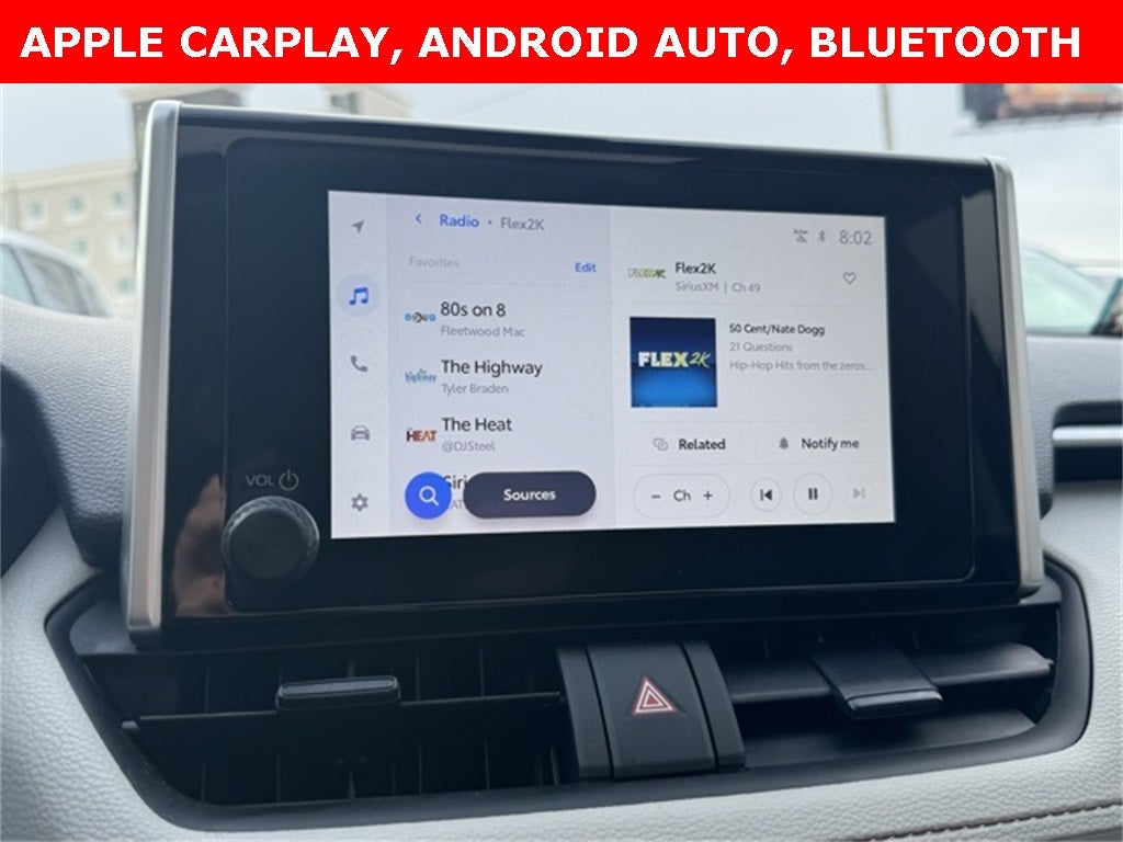 Stand out with confidence in this Certified, Recent Arrival 2025 Toyota RAV4 XLE AWD, finished in eye-catching Ruby Flare Pearl and delivering an efficient 27/33 City/Highway MPG. This CARFAX One-Owner RAV4 is equipped with Toyota Safety Sense technologies including a Collision Warning System, Adaptive Cruise Control, Lane Keeping Assist, Blind-Spot Monitors, and Safety Connect for added peace of mind. The XLE Package enhances everyday comfort with heated front seats, a heated 3-spoke leather steering wheel, Smart Key with push-button start, and a power tilt-and-slide moonroof included with the Weather and Convenience Packages. Stay seamlessly connected through the touchscreen infotainment system featuring Apple CarPlay, Android Auto, Bluetooth hands-free connectivity, SiriusXM, and an AM/FM audio system. Additional highlights include all-wheel drive capability, multi-zone automatic climate control, a power driver seat, backup camera, 17-inch 5-spoke silver alloy wheels, 4-wheel disc brakes, and advanced stability and traction control systems. With a Clean CARFAX history, modern technology, and versatile performance, this 2025 RAV4 XLE AWD is an exceptional compact SUV ready for the road ahead.
