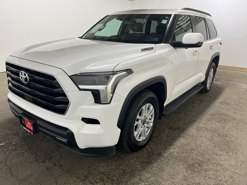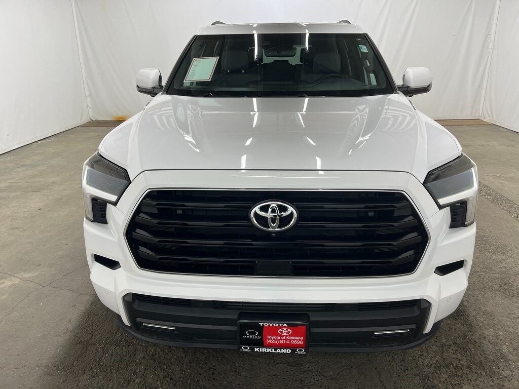 Toyota Gold Certified Certified, V6 Hybrid, 10-Speed Automatic, 4WD, 3rd row seats: split-bench, 4-Wheel Disc Brakes, 8 Speakers, ABS brakes, Air Conditioning, All-Weather Liners/Cargo Mat (TMS), Alloy wheels, AM/FM radio: SiriusXM, Anti-whiplash front head restraints, Apple CarPlay/Android Auto, Auto High-beam Headlights, Auto-dimming door mirrors, Auto-dimming Rear-View mirror, Automatic temperature control, Brake assist, Bumpers: body-color, Delay-off headlights, Driver door bin, Driver vanity mirror, Dual front impact airbags, Dual front side impact airbags, Electronic Stability Control, Emergency communication system: Safety Connect (10-year trial), Exterior Parking Camera Rear, Fabric Seat Trim, Front anti-roll bar, Front Bucket Seats, Front Center Armrest w/Storage, Front dual zone A/C, Front fog lights, Front reading lights, Front wheel independent suspension, Fully automatic headlights, Garage door transmitter, Headlight cleaning, Heated door mirrors, Heated Front Seats, Heated front seats, Illuminated entry, Knee airbag, Leather Shift Knob, Leather steering wheel, Low tire pressure warning, Occupant sensing airbag, Outside temperature display, Overhead airbag, Overhead console, Panic alarm, Passenger door bin, Passenger vanity mirror, Power door mirrors, Power driver seat, Power moonroof, Power passenger seat, Power steering, Power windows, Radio: 14" Toyota Audio Multimedia, Radio: 8" Toyota Audio Multimedia, Rear air conditioning, Rear reading lights, Rear seat center armrest, Rear window defroster, Rear window wiper, Reclining 3rd row seat, Remote keyless entry, Security system, SofTex Seat Trim, Speed control, Speed-sensing steering, Split folding rear seat, Spoiler, Steering wheel mounted audio controls, Tachometer, Telescoping steering wheel, Tilt steering wheel, Traction control, Trip computer, Turn signal indicator mirrors, Variably intermittent wipers, Voltmeter, Wheels: 18" Styled-Alloy. Features: 2025 Toyota Sequoia SR5 Ice 4WD V6 Hybrid 10-Speed Automatic. Certified. Toyota Gold Certified Details.